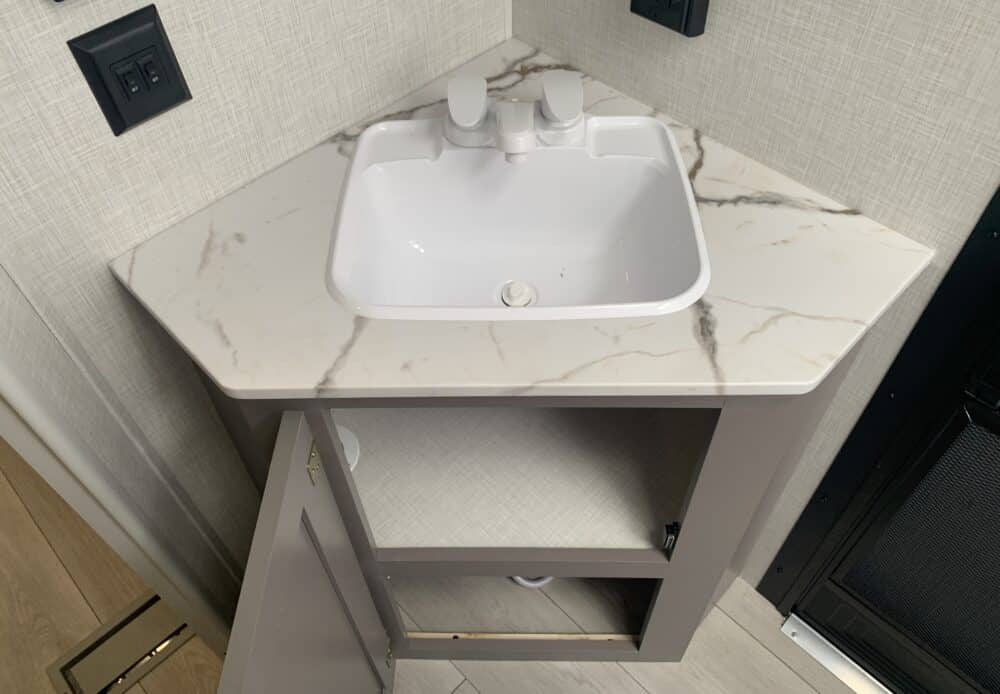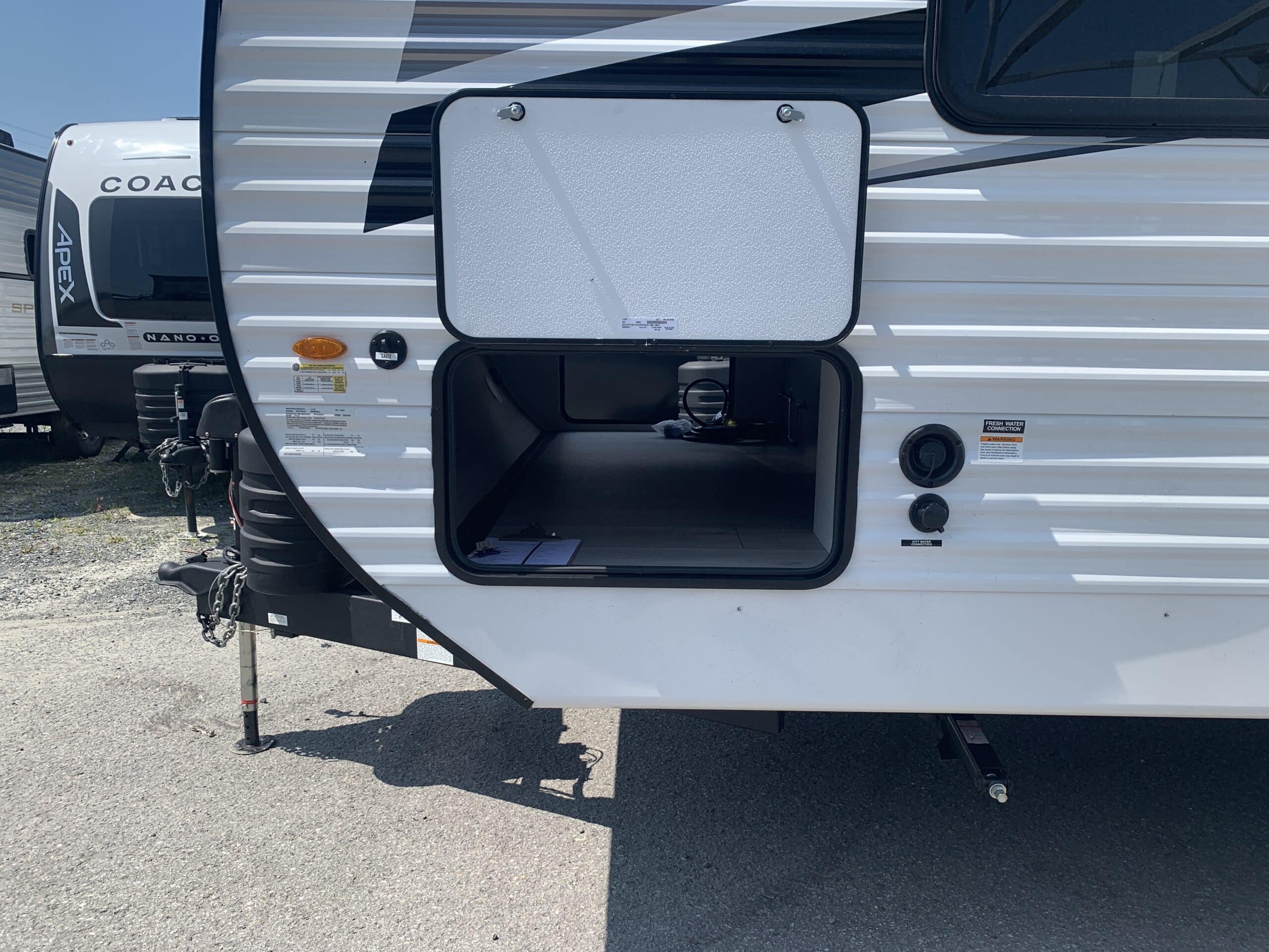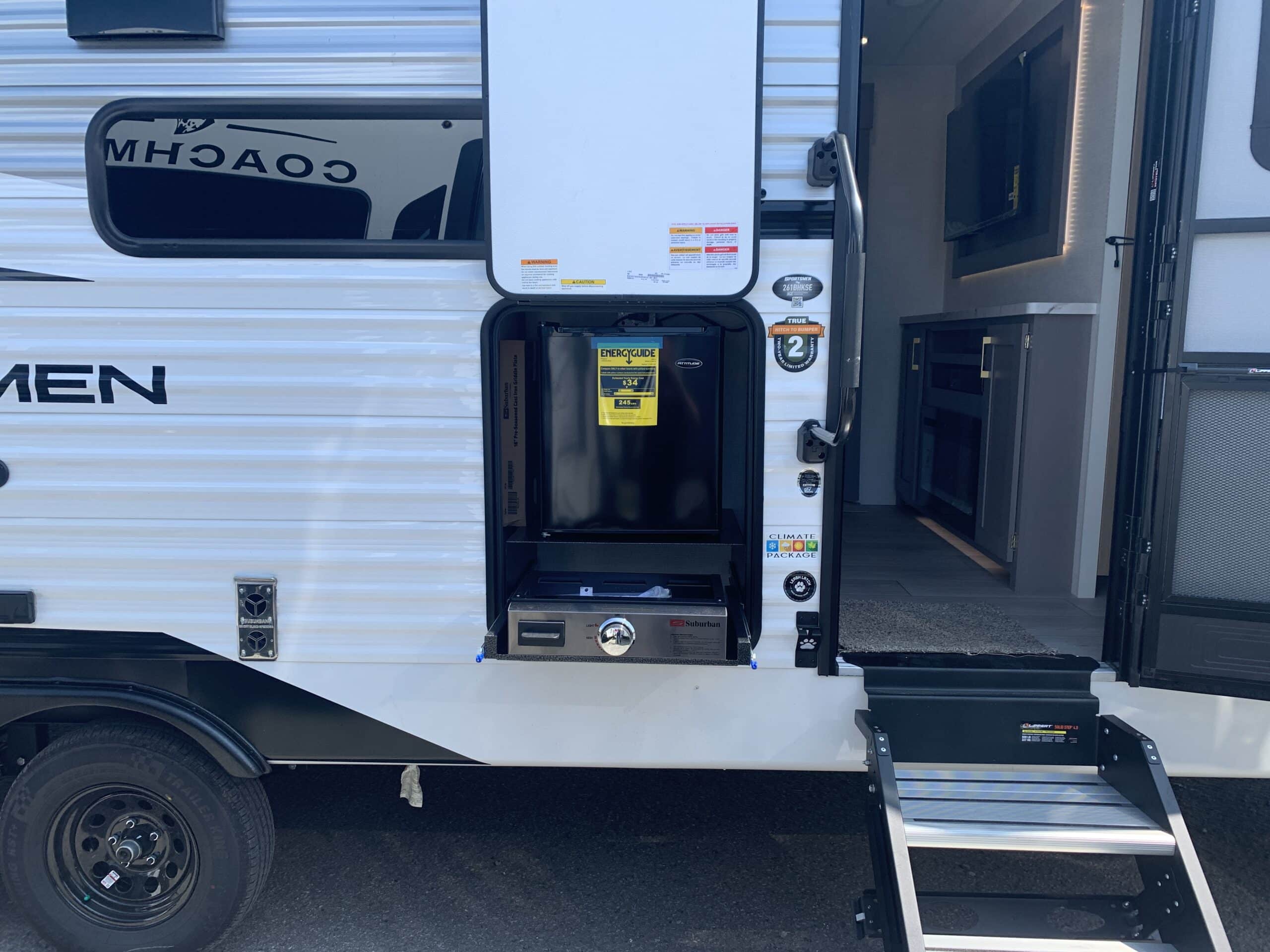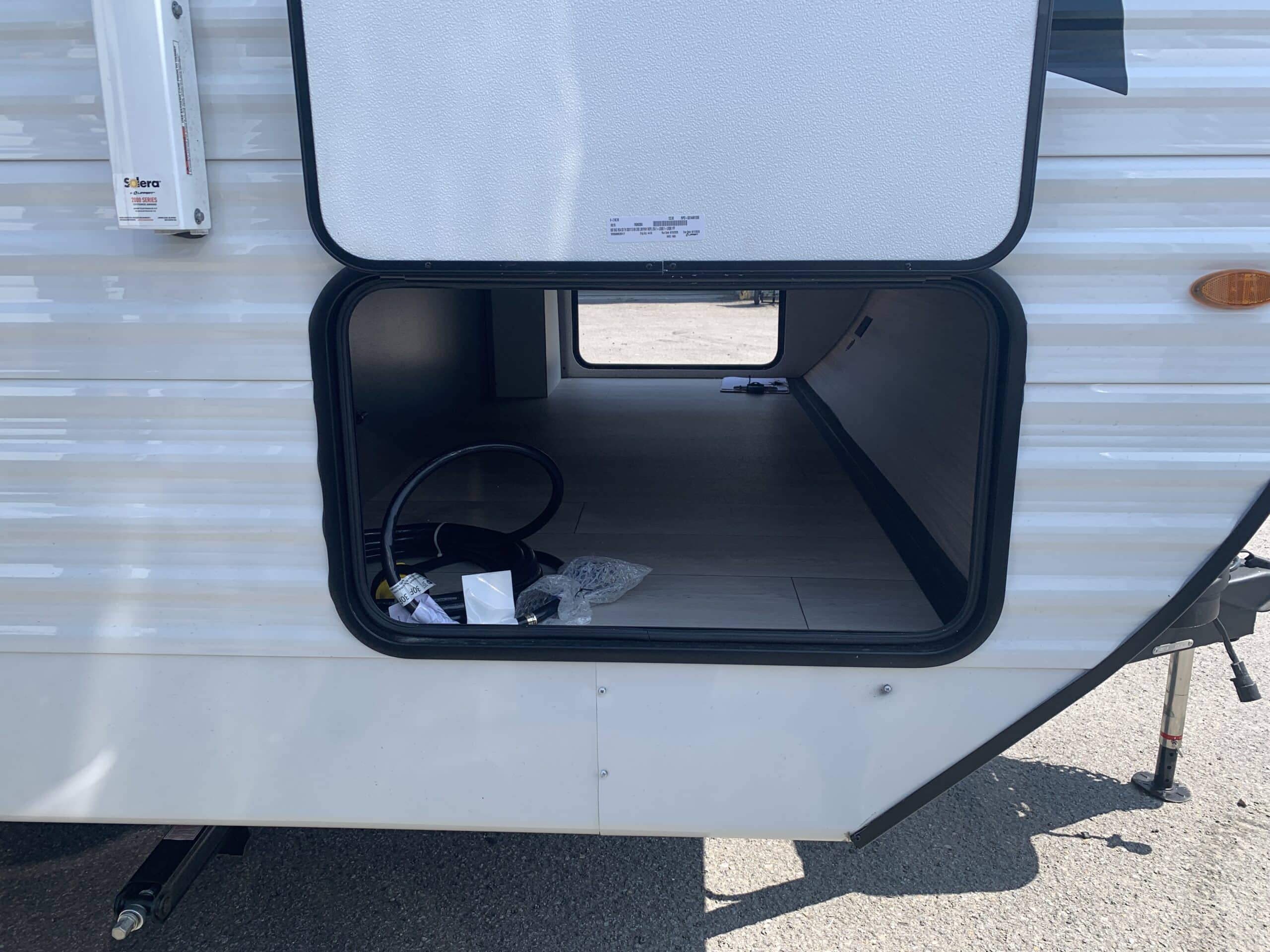 D’abord, cette roulotte a un auvent de 18 pieds, une petite cuisine et son grill pour profiter de l’extérieur sans soucis. Puisque ses marches sont ajustables et très stables vous aurez un accès facile à l’intérieur. Aussi, elle est pré-filé pour panneau solaire et caméra de recul. Les coffres ont un bel espace de rangement.
