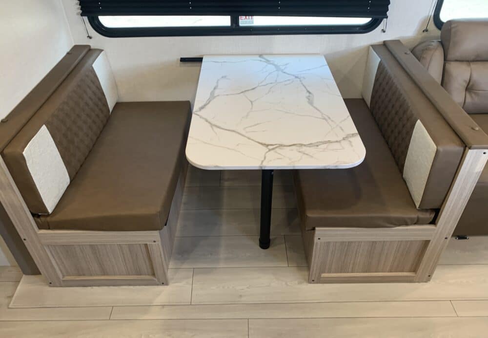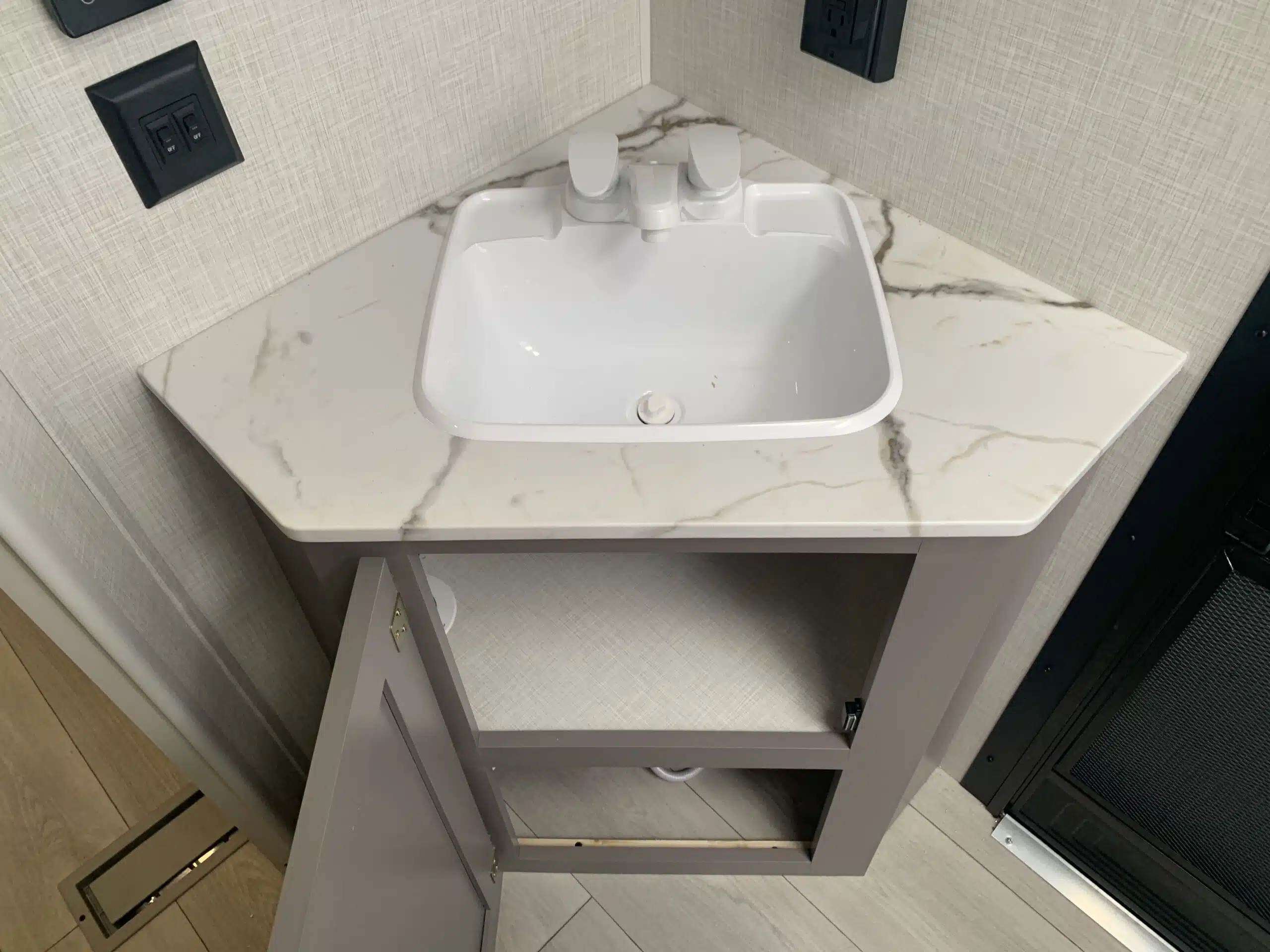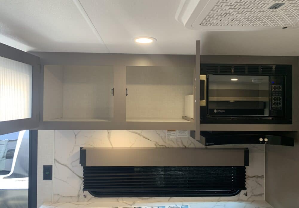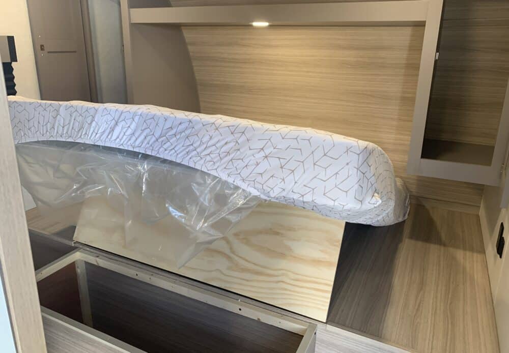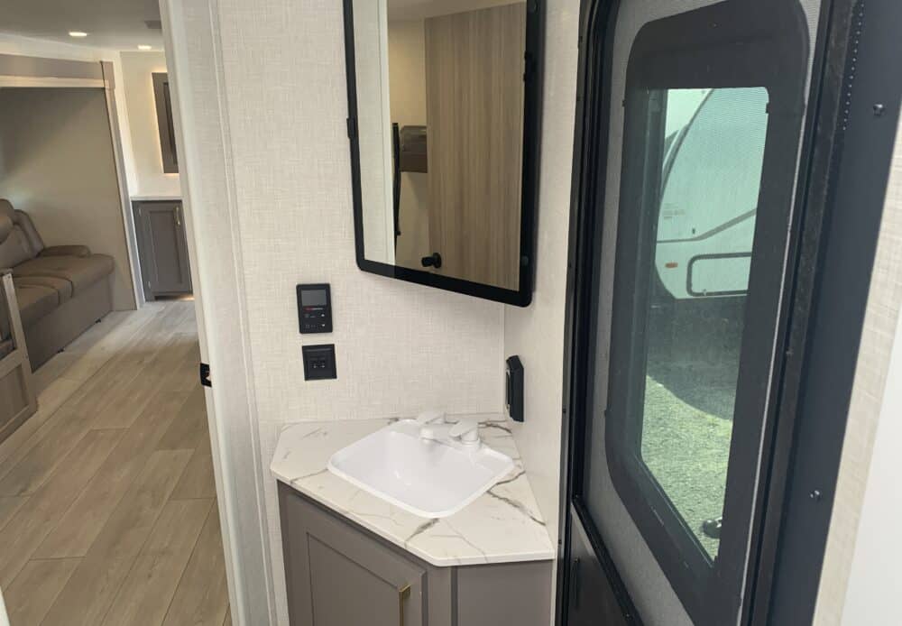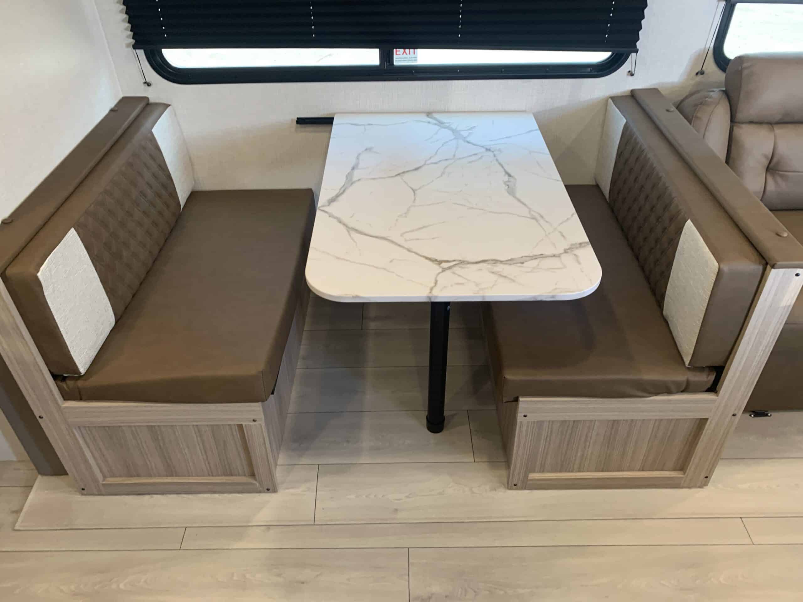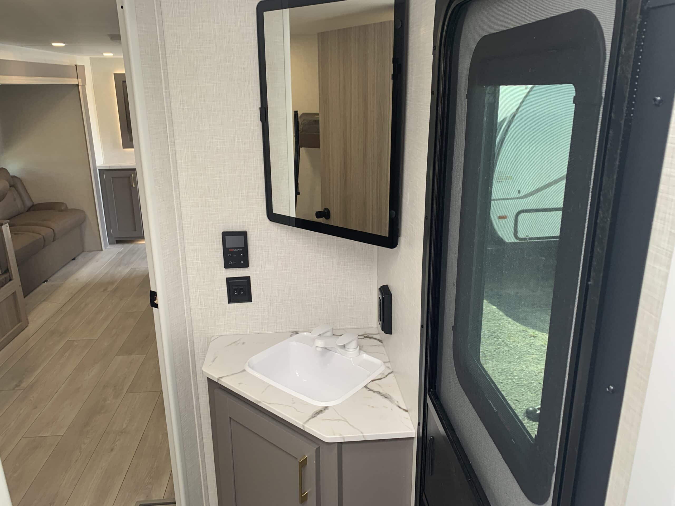 De plus la Sportsmen 261BHKSE a 2 airs climatisés de 15000 btu et un foyer pour tempérer l’ambiance désirée. Par ailleurs, la cuisine a un micro-ondes, un poêle avec dessus en verre et un réfrigérateur de 12 volts. Aussi une banquette et un sofa situé dans l’extension se transforment en lit. Une armoire-penderie pour faciliter le rangement. Enfin la radio et ses haut-parleurs vous permettront de relaxer en écoutant votre musique préférée.