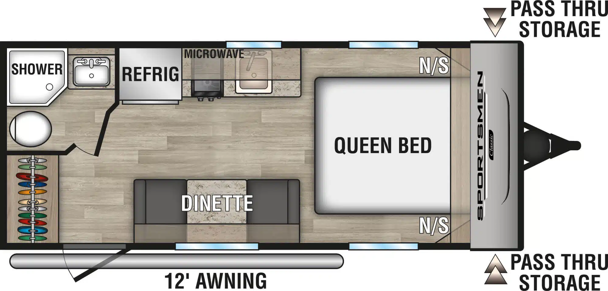 2026 Sportsmen Classic 160QB, roulotte légère pour couple de 22 pieds à 3030 lbs avec 1 essieu, extérieur en aluminium.