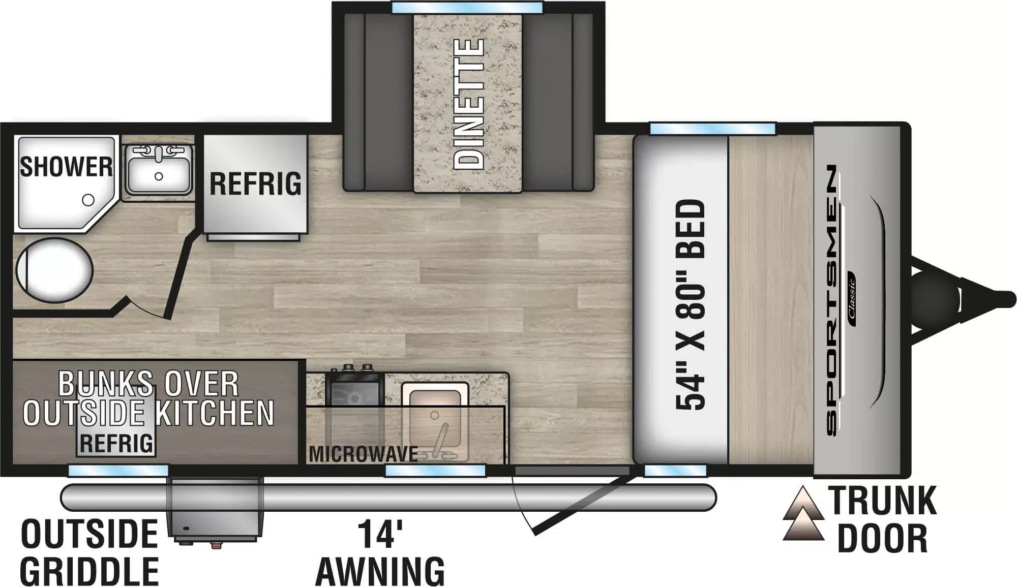 2026 Sportsmen Classic 191BHk, roulotte légère familiale de 22 pieds à 3350 avec 1 essieu, extérieur en aluminium et 1 extension.