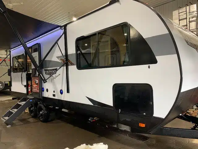 2024 WILDWOOD 22ERAS, roulotte pour couple de 28.2 pieds à 6197 lbs à 2 essieux, extérieur en fibre, laminé en Azdel et 1 extension.
