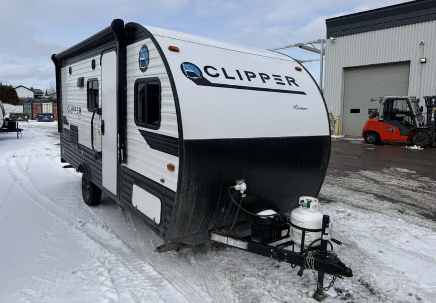 D’abord, cette roulotte a un auvent de 12 pieds, une douche et une cuisine pour profiterez de l’extérieur sans soucis. Puisque ses marches sont ajustables et très stables vous aurez un accès facile à l’intérieur. Les coffres ont un bel espace de rangement.