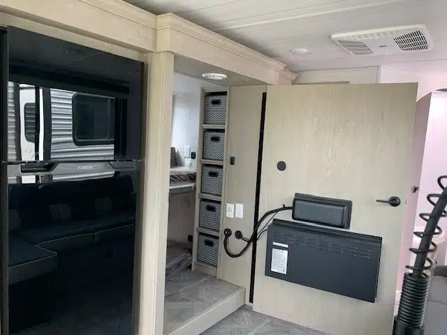 roulotte  familiales  a belle vue  coté avant   ,cuisine arrière  et  deux lit enfant  cacher dernière  tv  ,salle de bain avec douche   ,et chambre avant  fermé