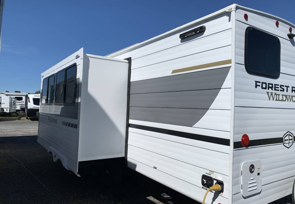 2026 Wildwood 26DBUD, roulotte familiale de33.3 pieds à 6923 lbs avec 2 essieux, 1 extension et l’extérieur en aluminium.