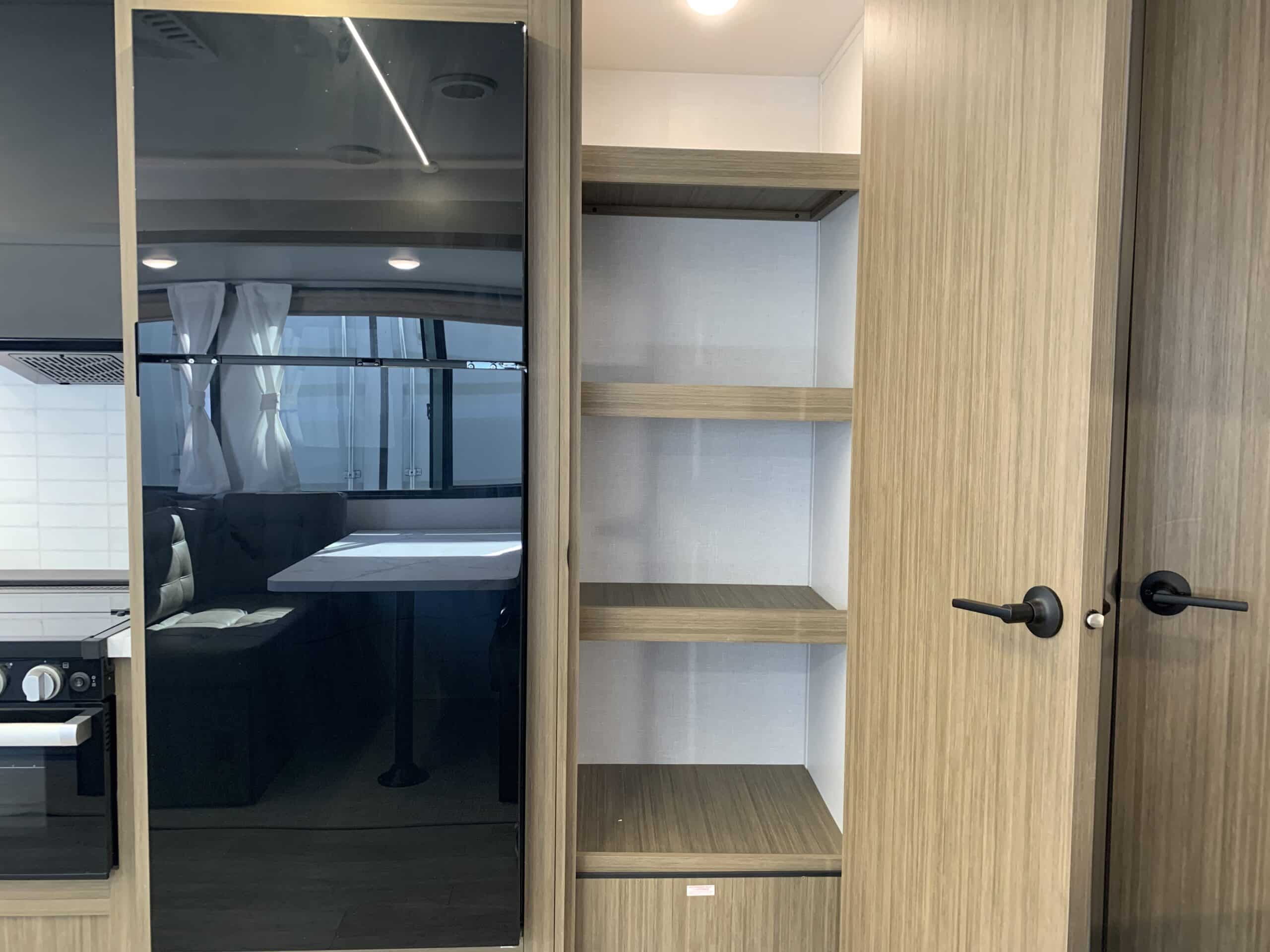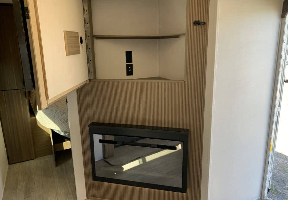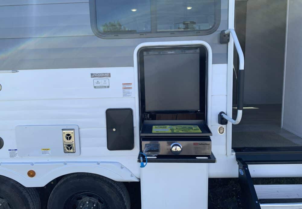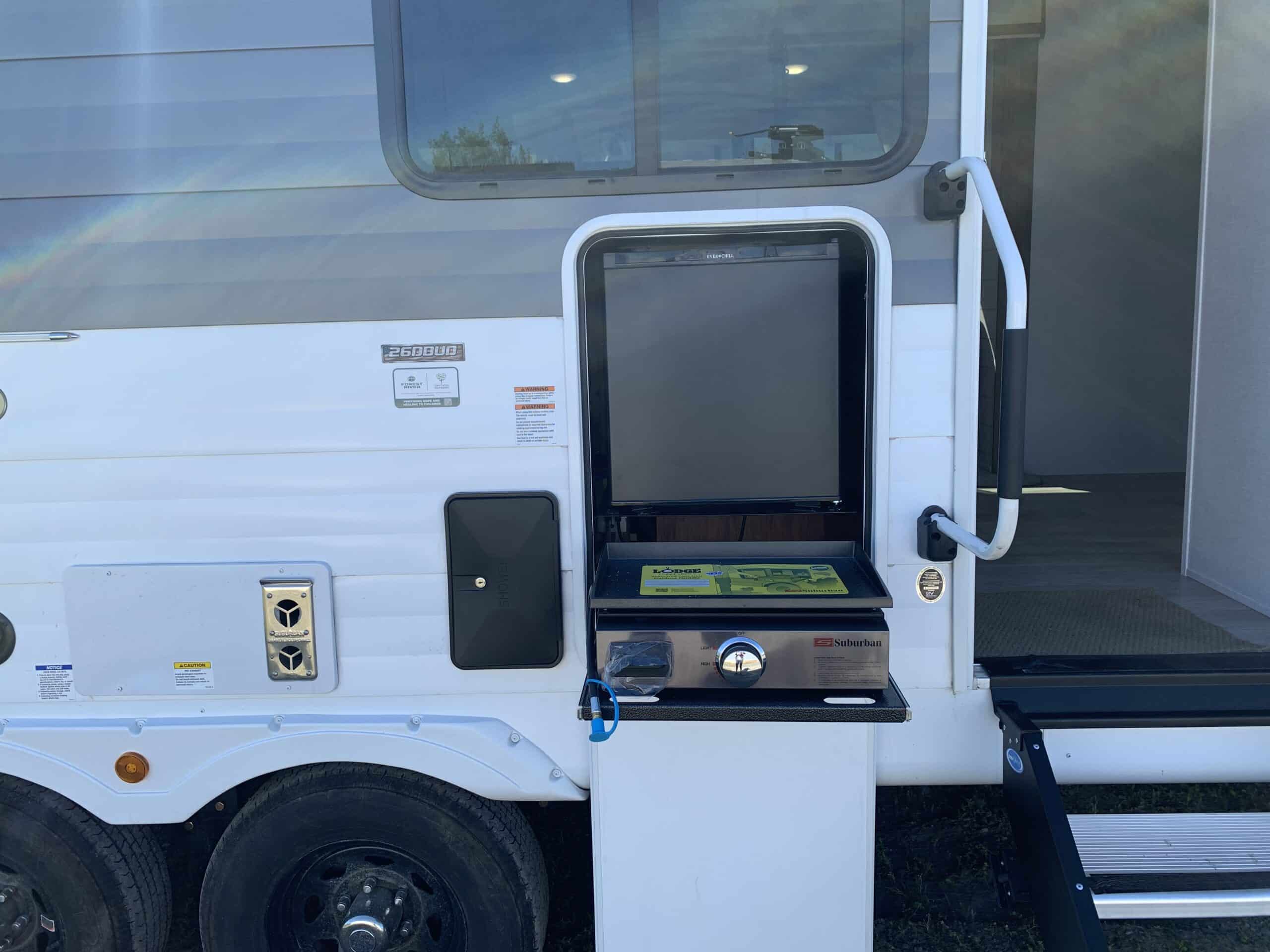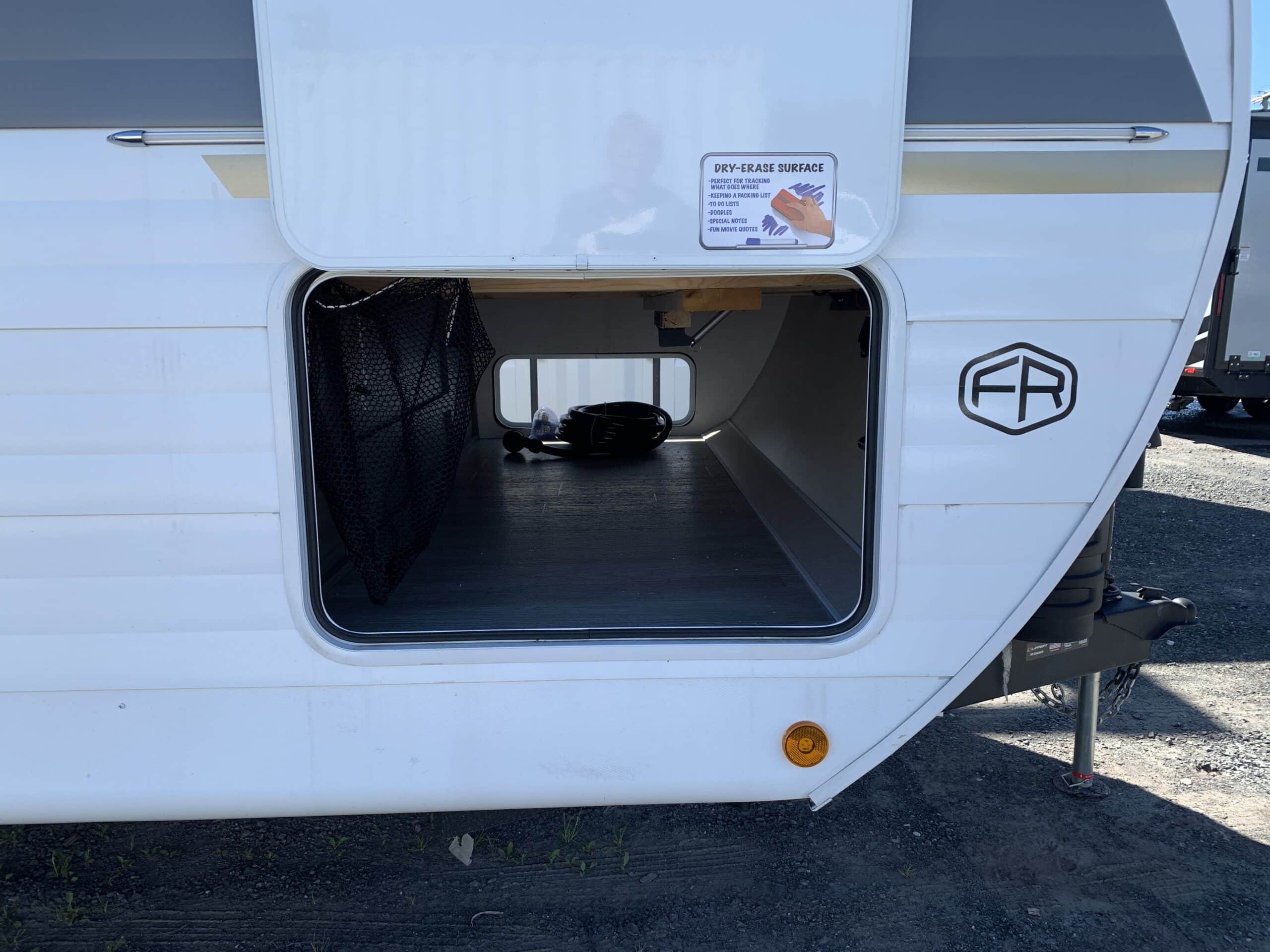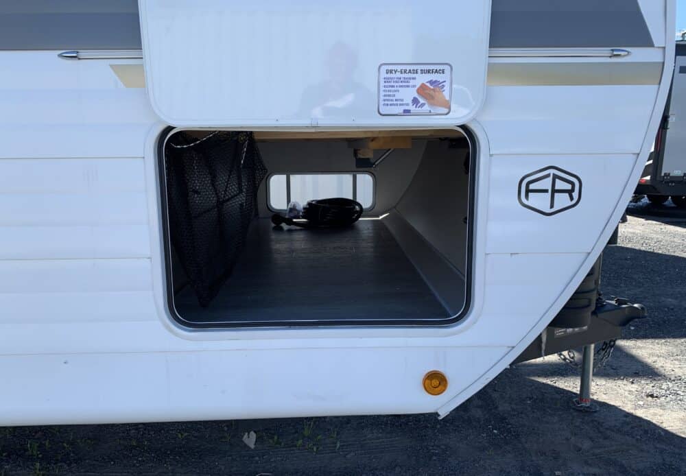 D’abord, cette roulotte a un auvent de 18 pieds, une douche et une cuisine pour profiterez de l’extérieur sans soucis. Puisque ses marches sont ajustables et très stables vous aurez un accès facile à l’intérieur. Les coffres ont un bel espace de rangement.