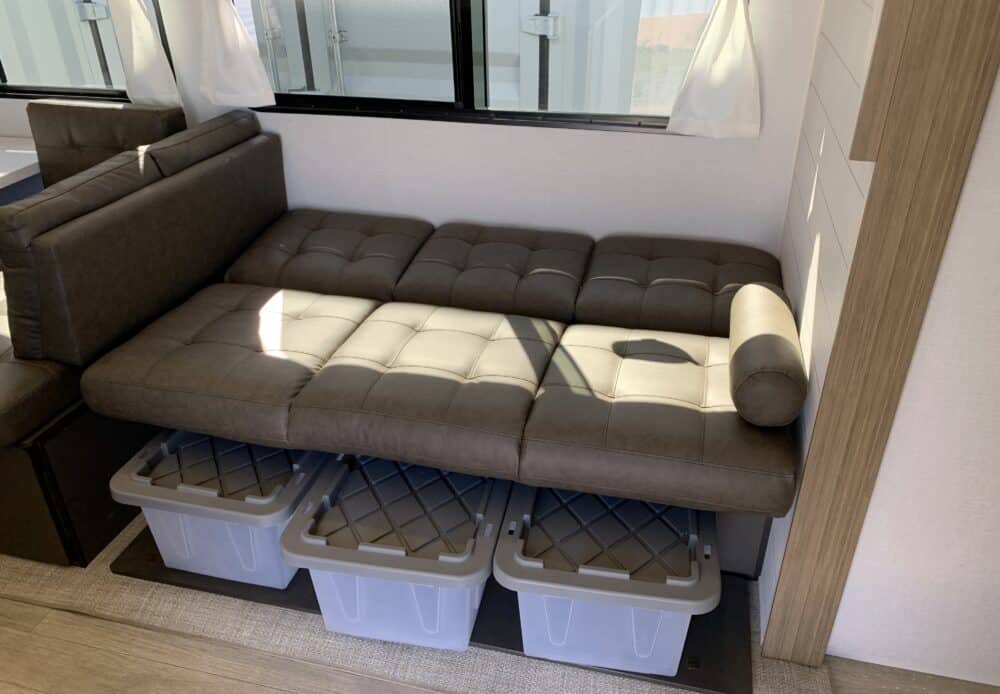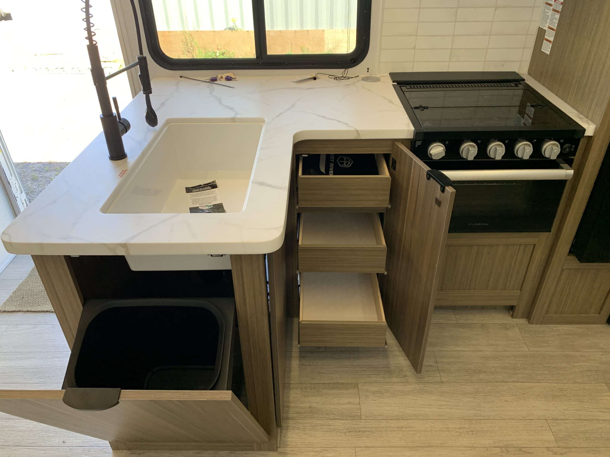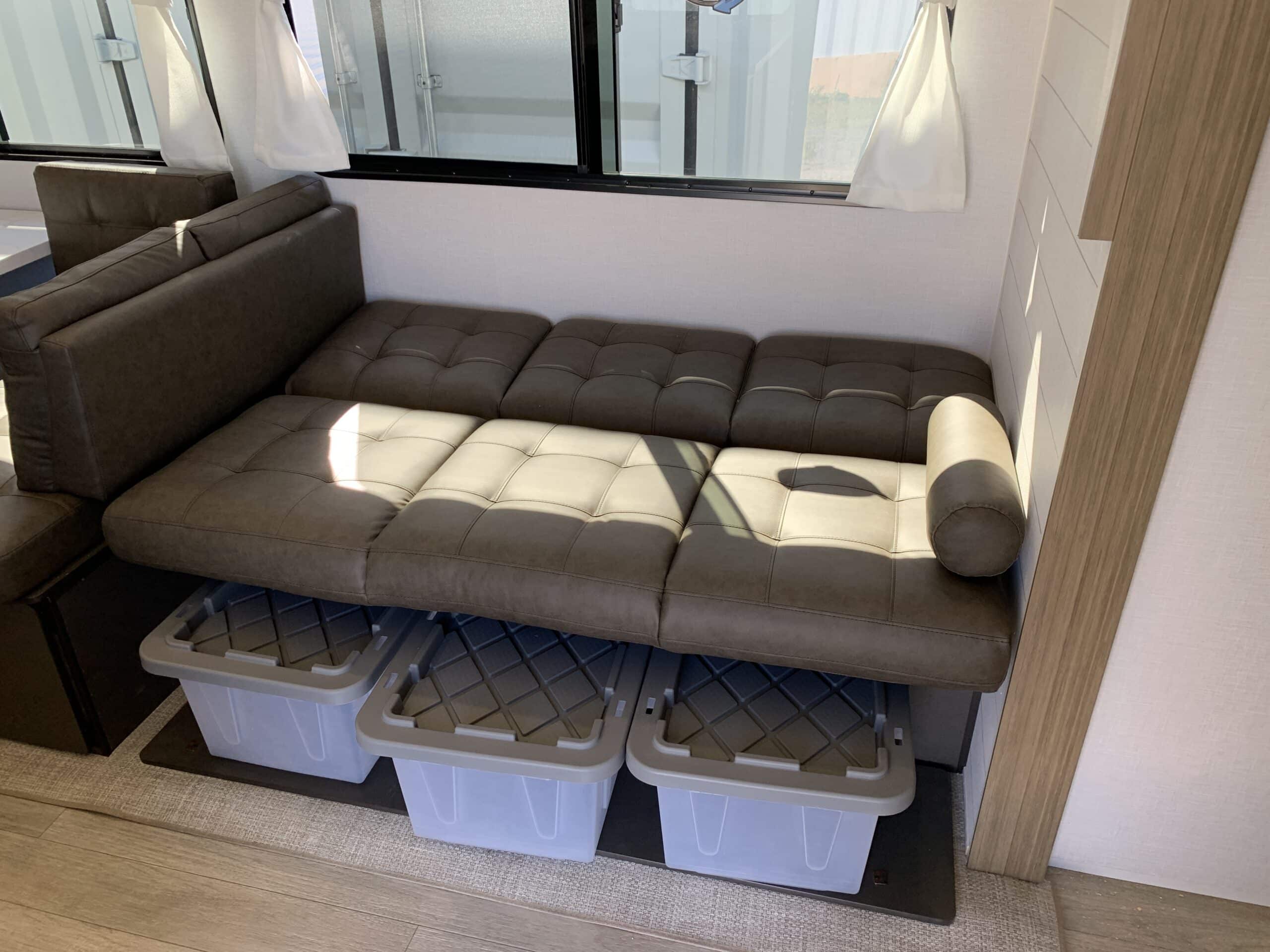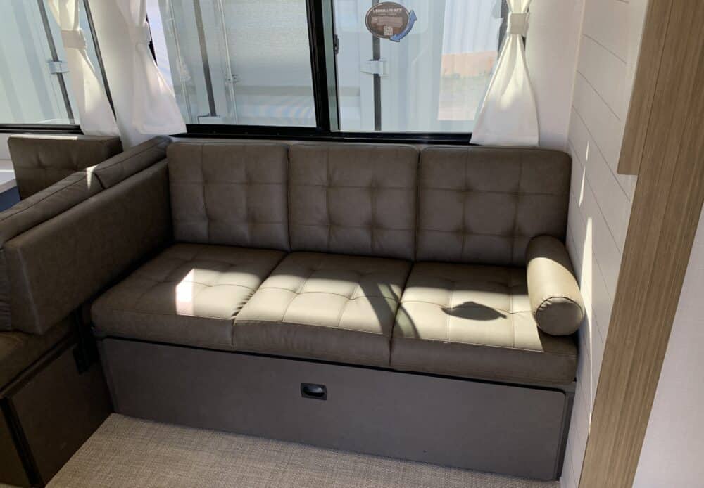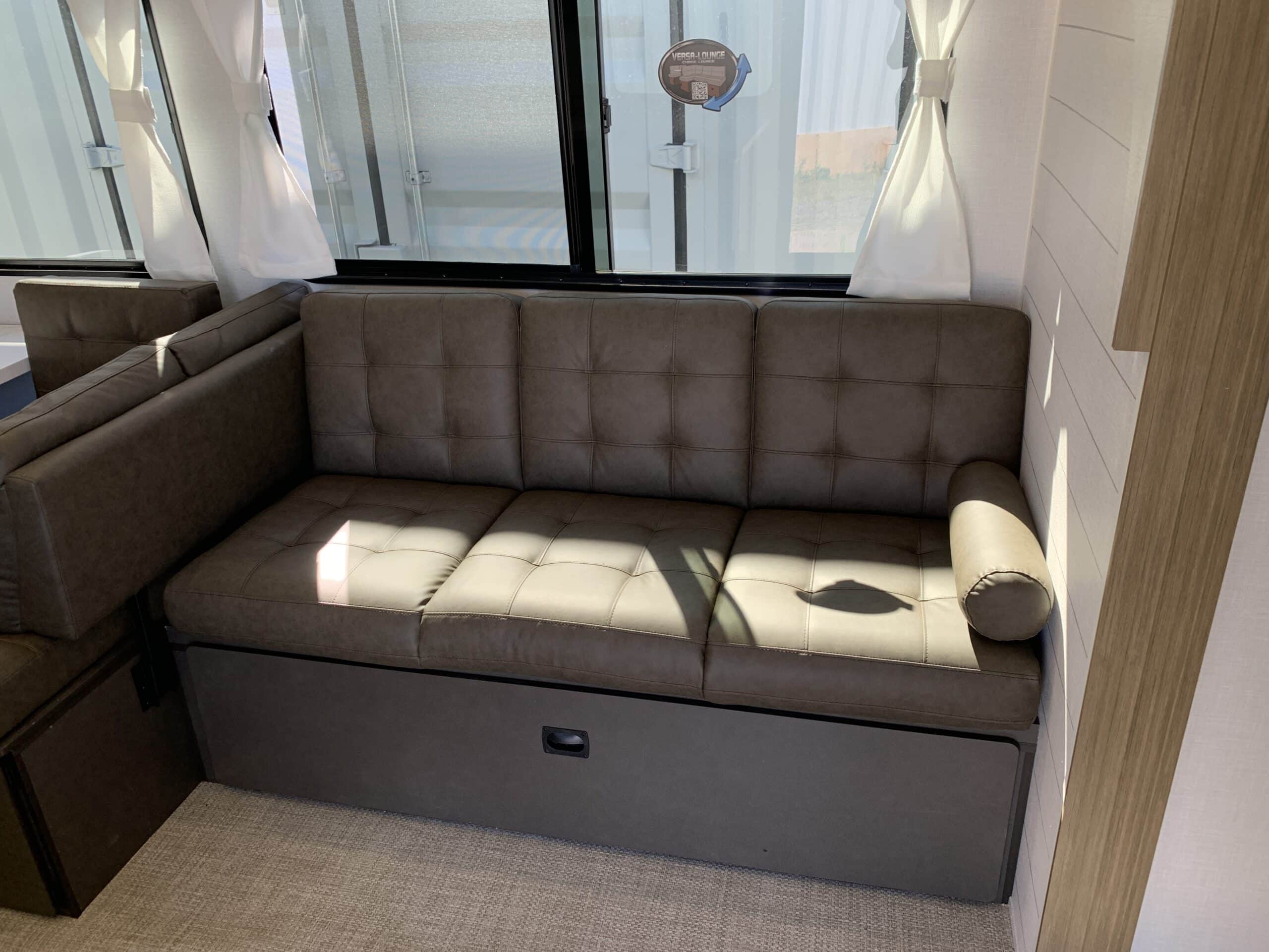 La Wildwood 26DBUD a un air climatisé de 13500 btu qui tempérera l’ambiance désirée. Par ailleurs, la cuisinière a un four et 3 brûleurs, un réfrigérateur 12 volts et un micro-ondes. De plus, il y a une banquette versatile, ainsi qu’un sofa en L. Enfin, le système audio vous permettra d’écouter votre musique préférée.