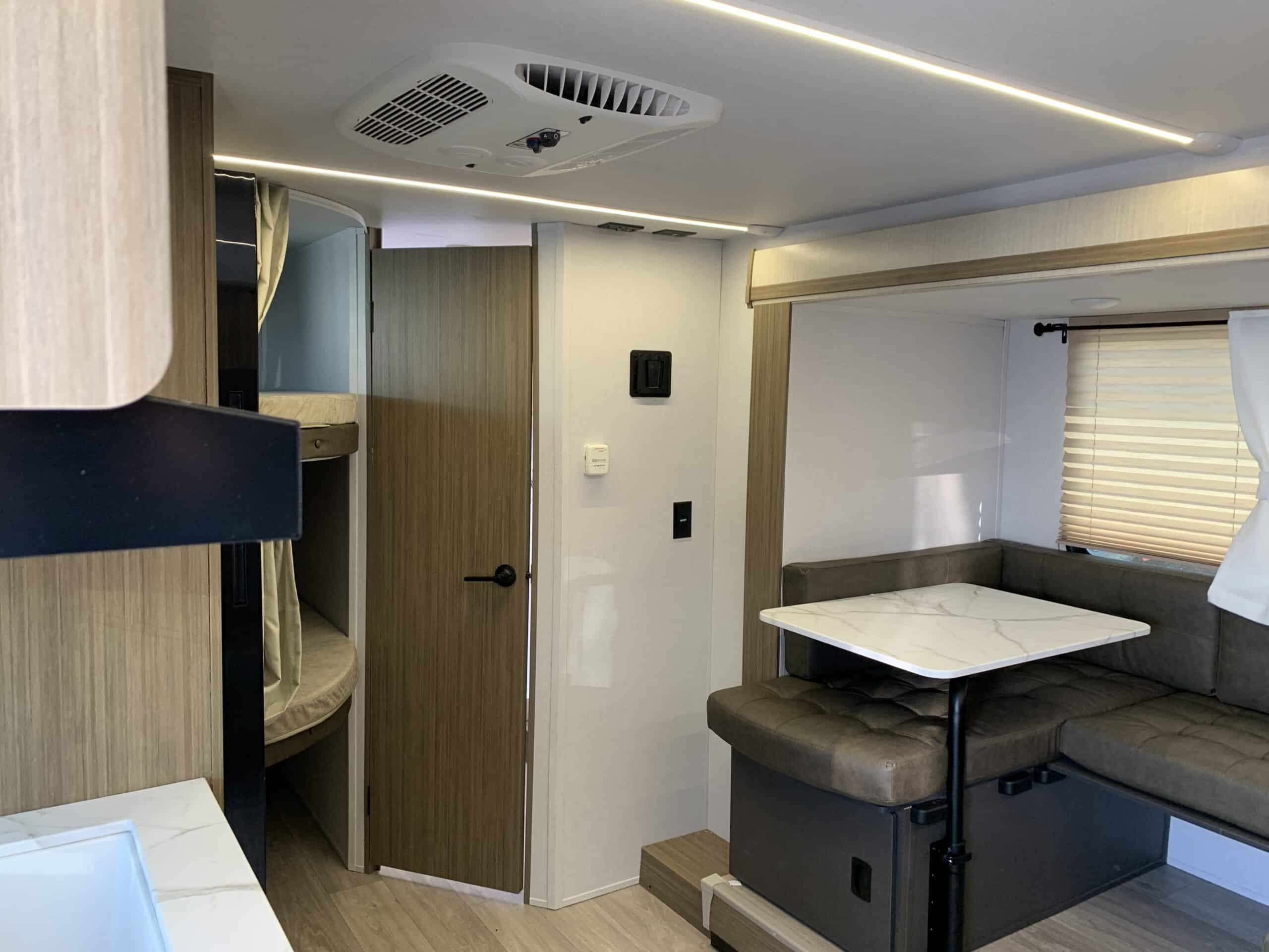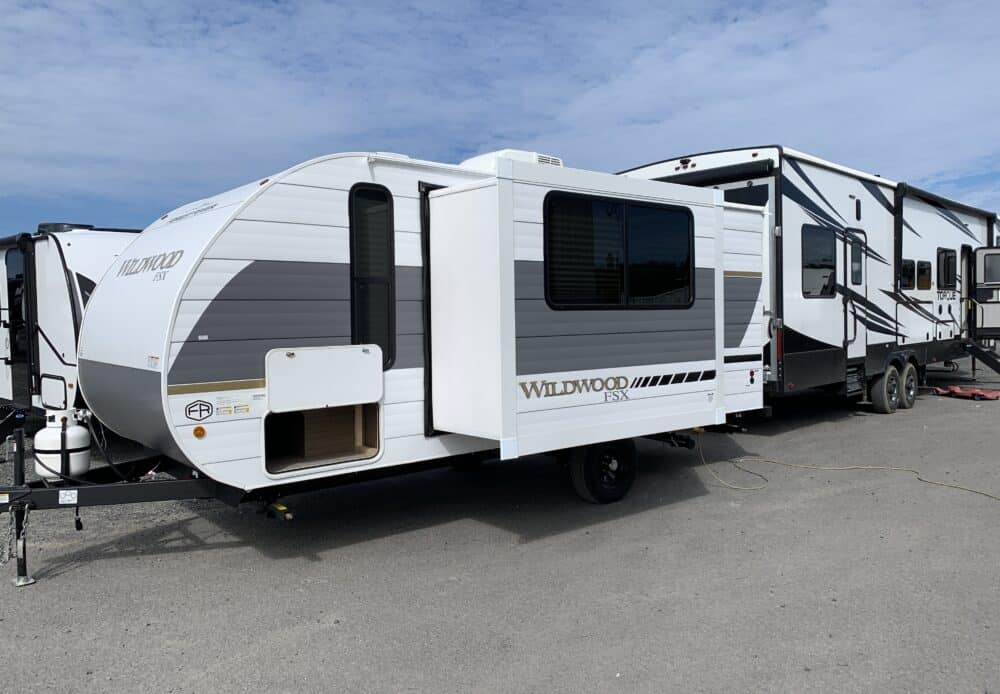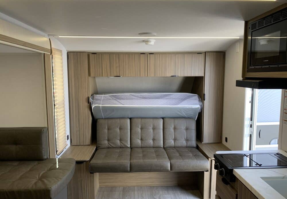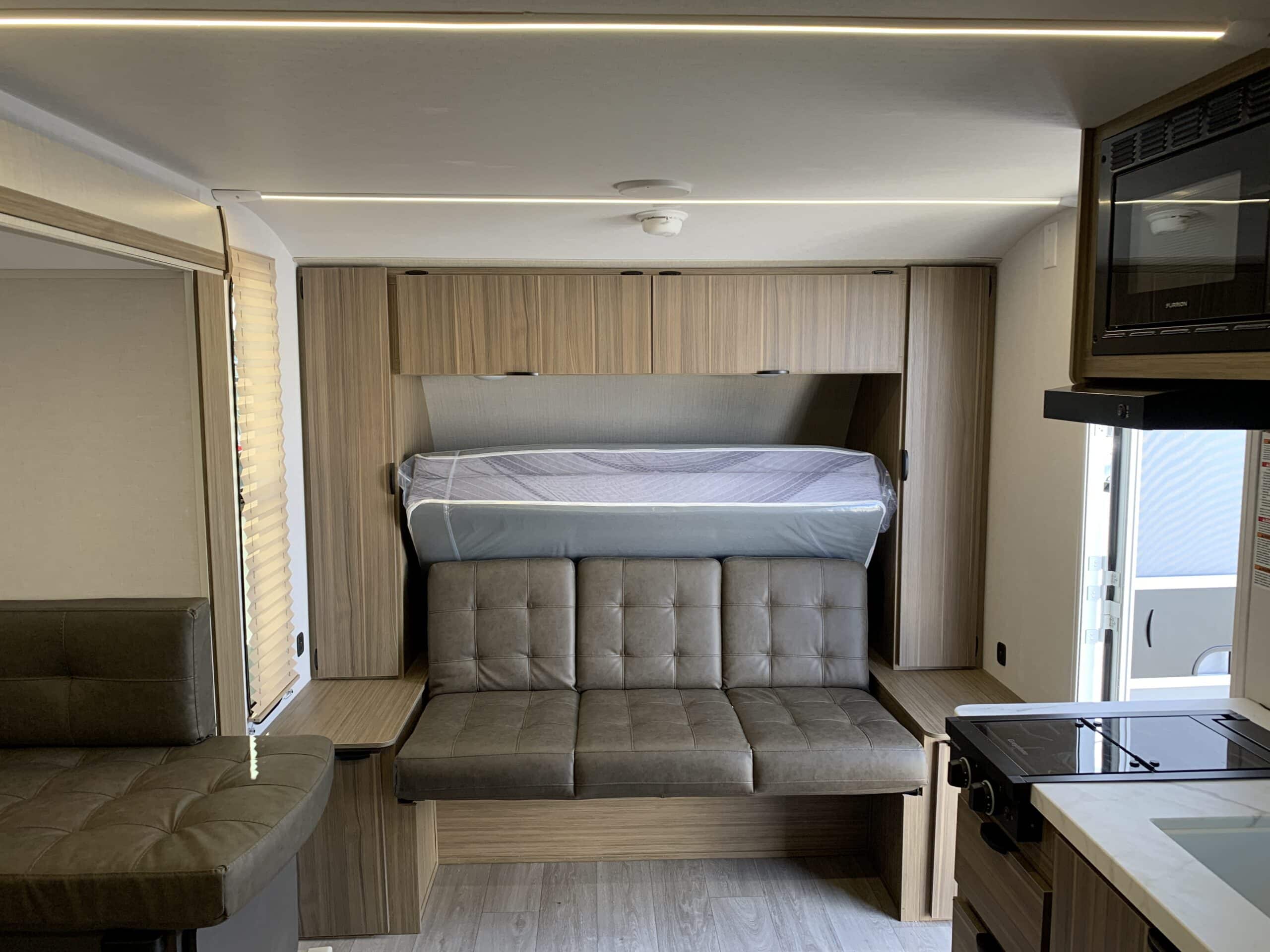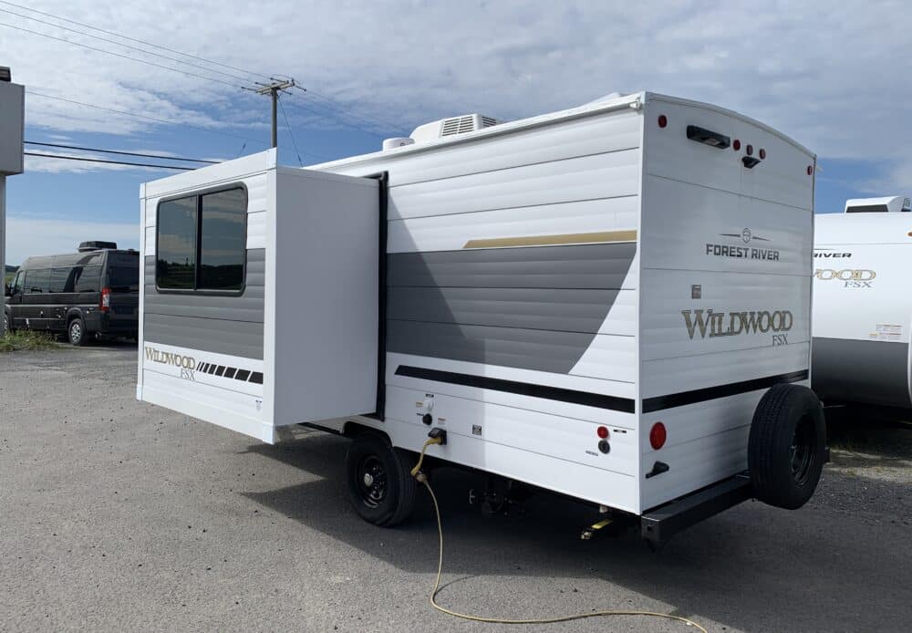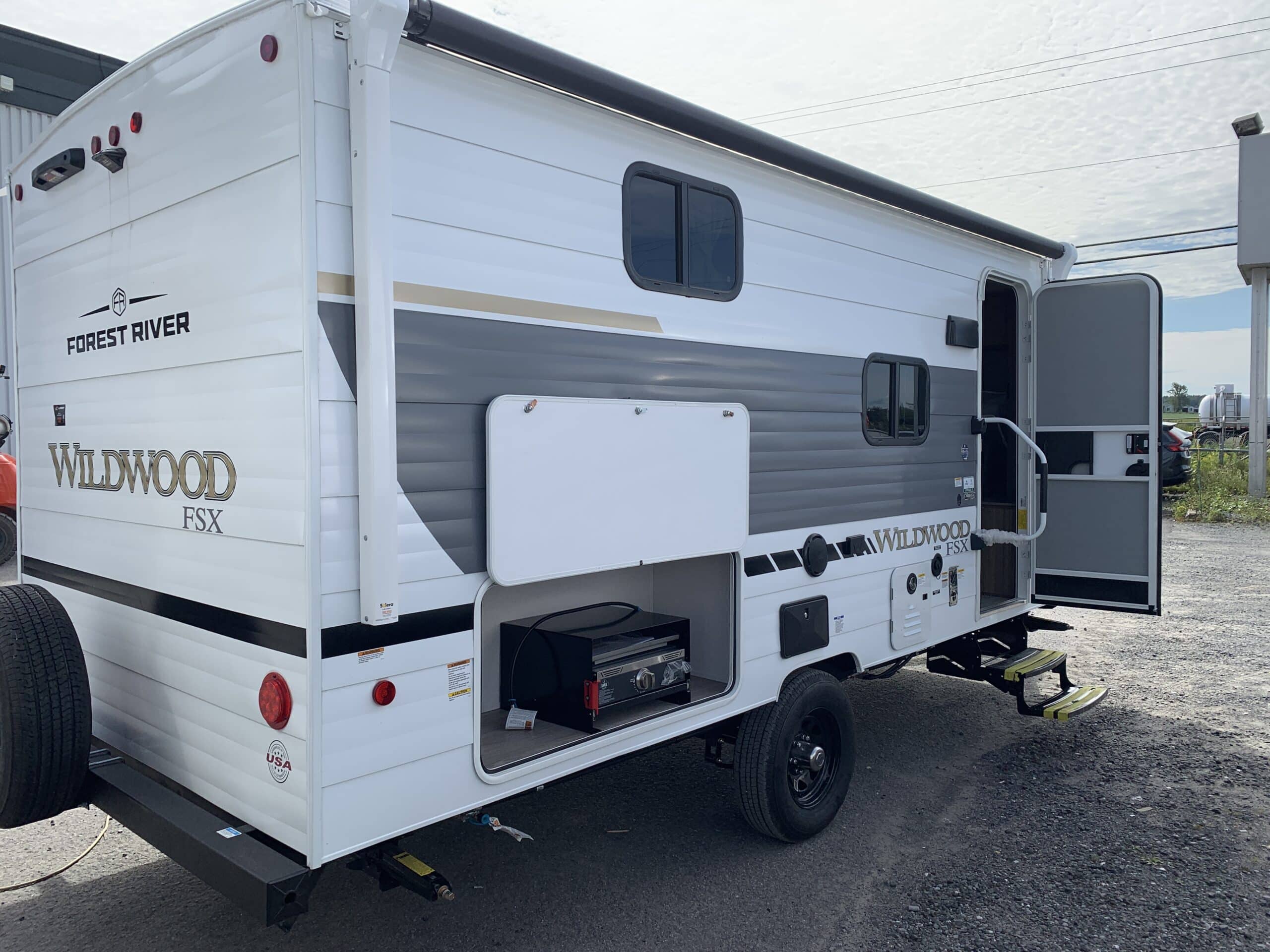 La Wildwood 178BHSK a un air climatisé de 13500 btu qui tempérera l’ambiance désirée. Par ailleurs, la cuisinière a 2 brûleurs, un réfrigérateur 12 volts et un micro-ondes. De plus, une banquette en U se transforme en lit. Enfin, le système audio vous permettra d’écouter votre musique préférée.