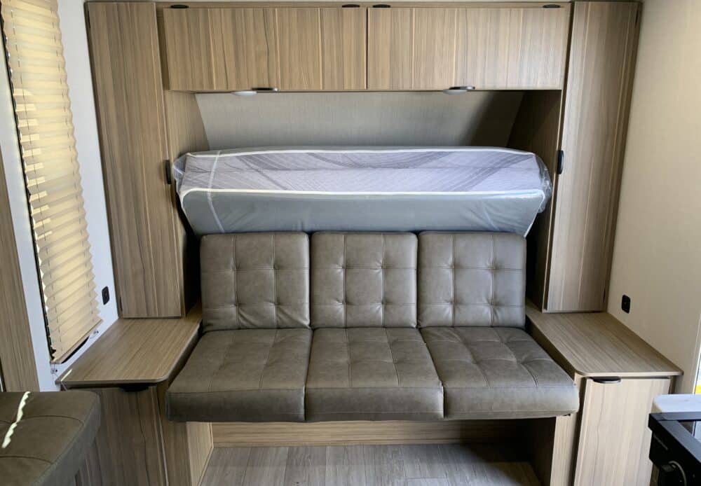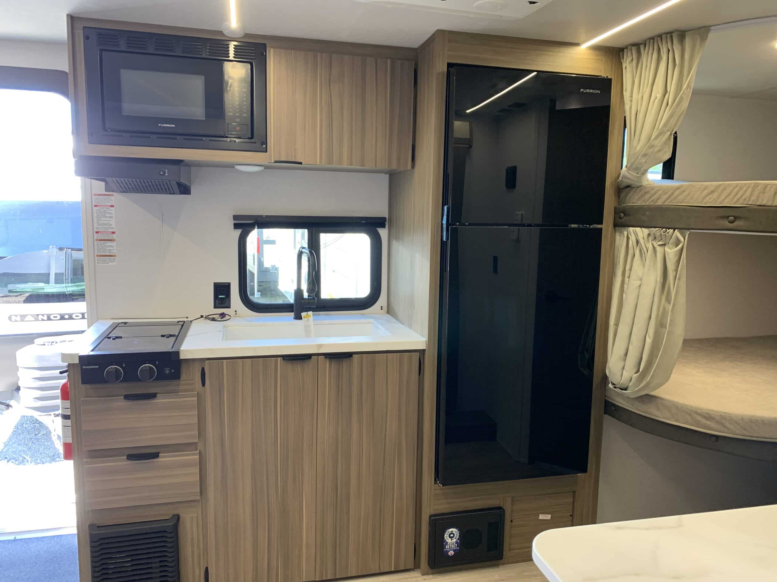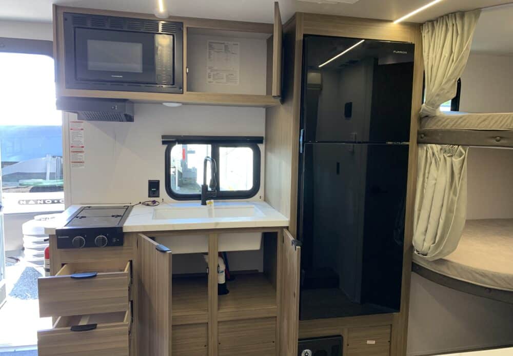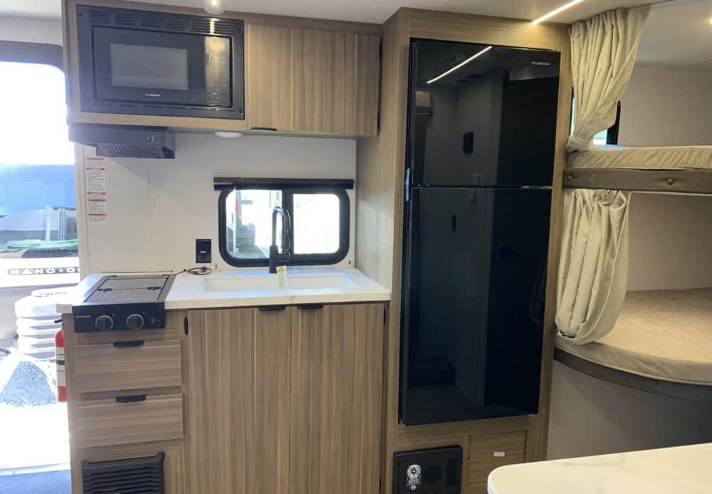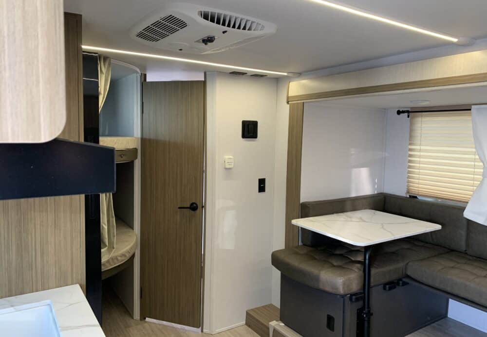 La Wildwood 178BHSK a un air climatisé de 13500 btu qui tempérera l’ambiance désirée. Par ailleurs, la cuisinière a 2 brûleurs, un réfrigérateur 12 volts et un micro-ondes. De plus, une banquette en U se transforme en lit. Enfin, le système audio vous permettra d’écouter votre musique préférée.