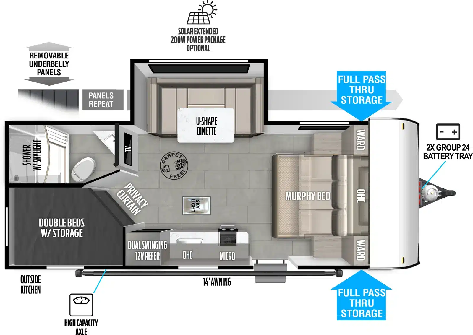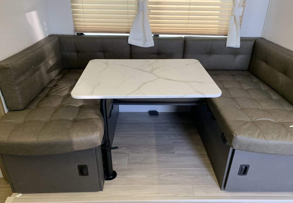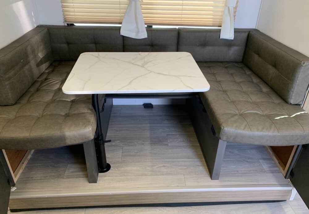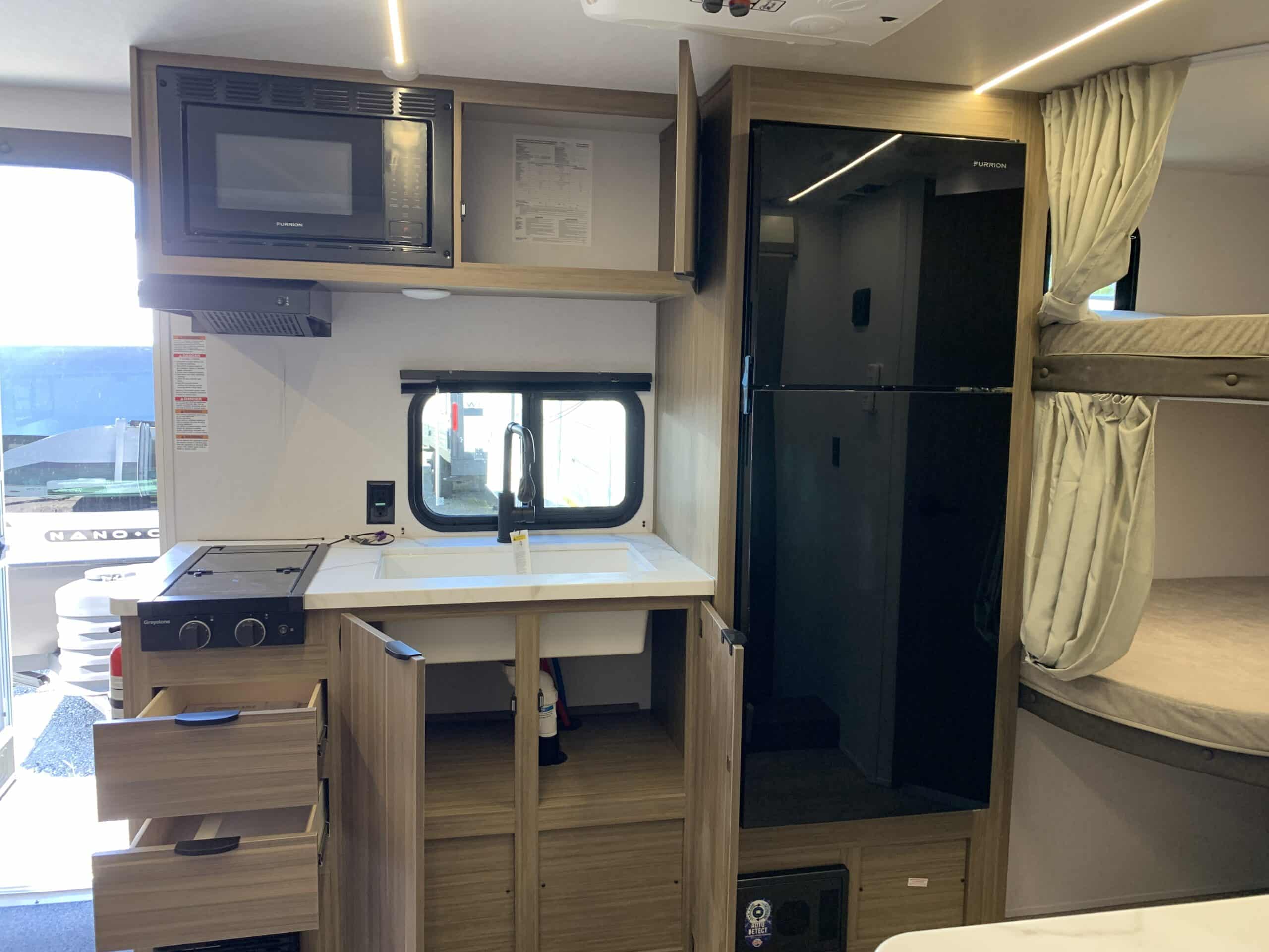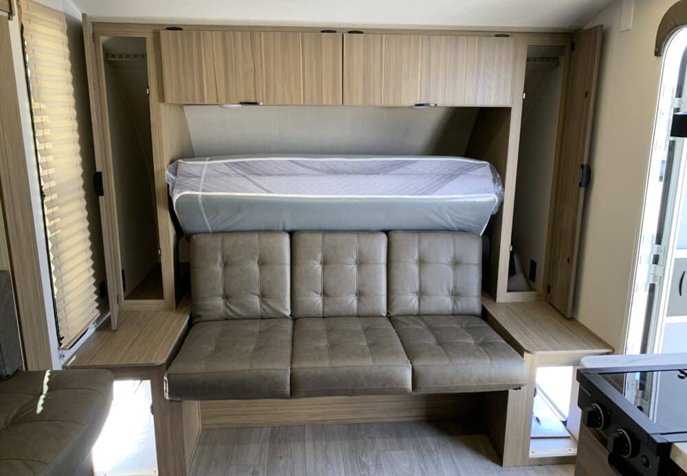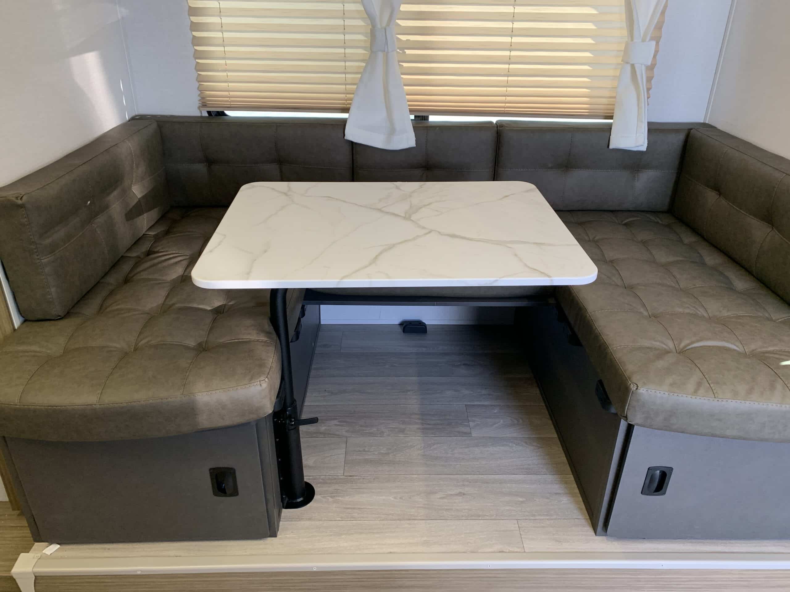 La Wildwood 178BHSK a un air climatisé de 13500 btu qui tempérera l’ambiance désirée. Par ailleurs, la cuisinière a 2 brûleurs, un réfrigérateur 12 volts et un micro-ondes. De plus, une banquette en U se transforme en lit. Enfin, le système audio vous permettra d’écouter votre musique préférée.