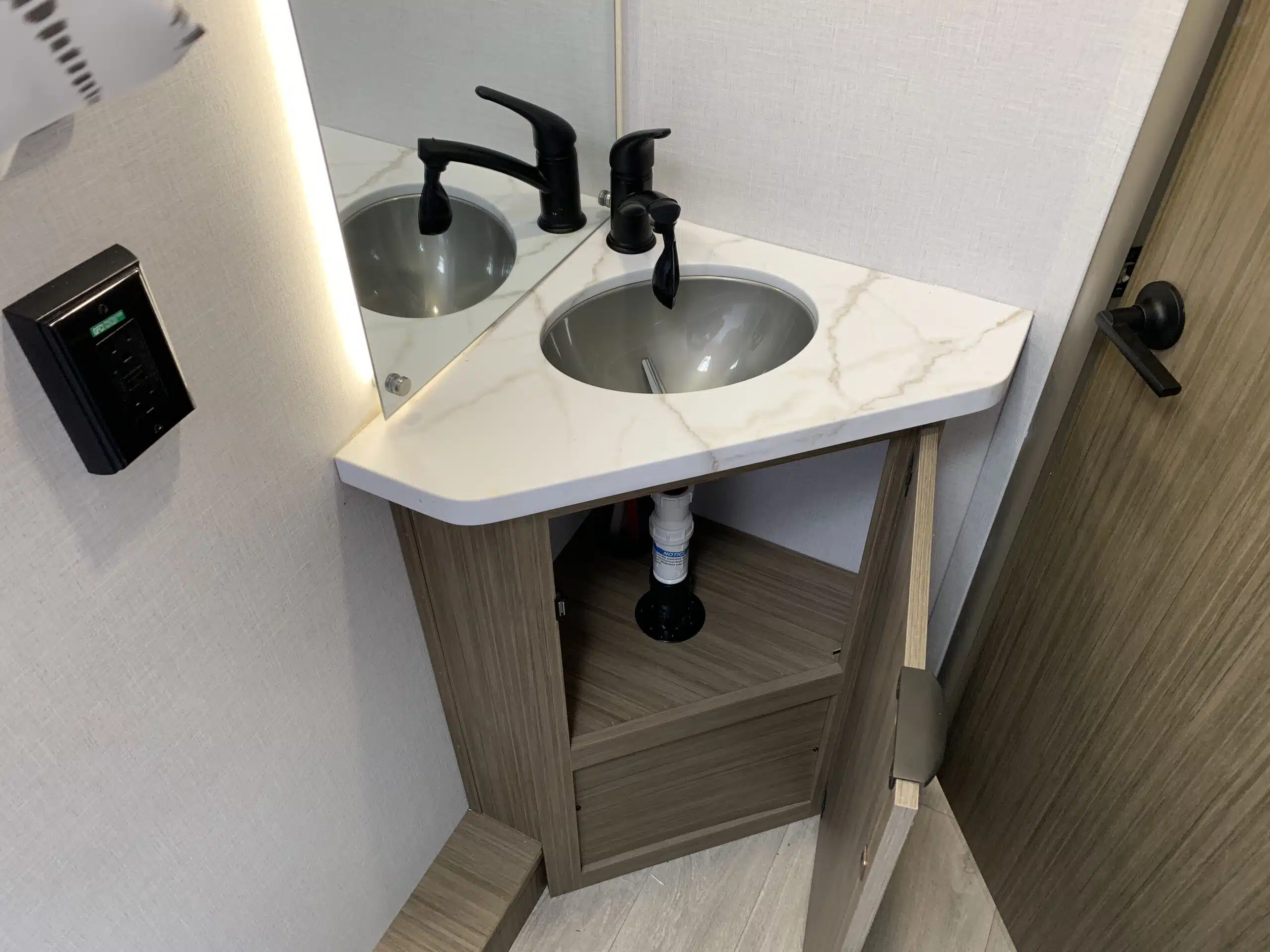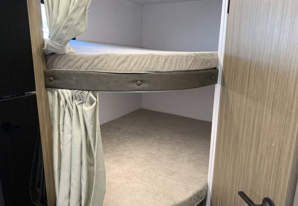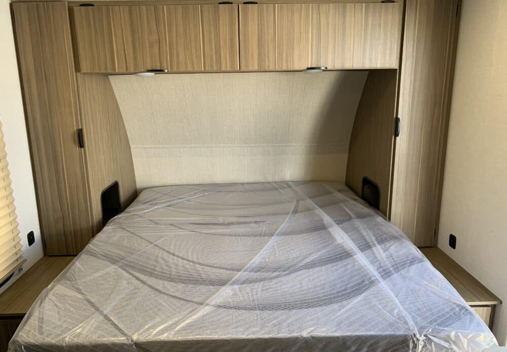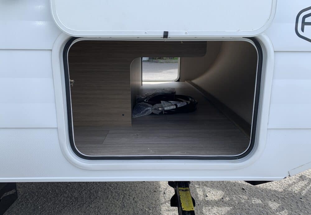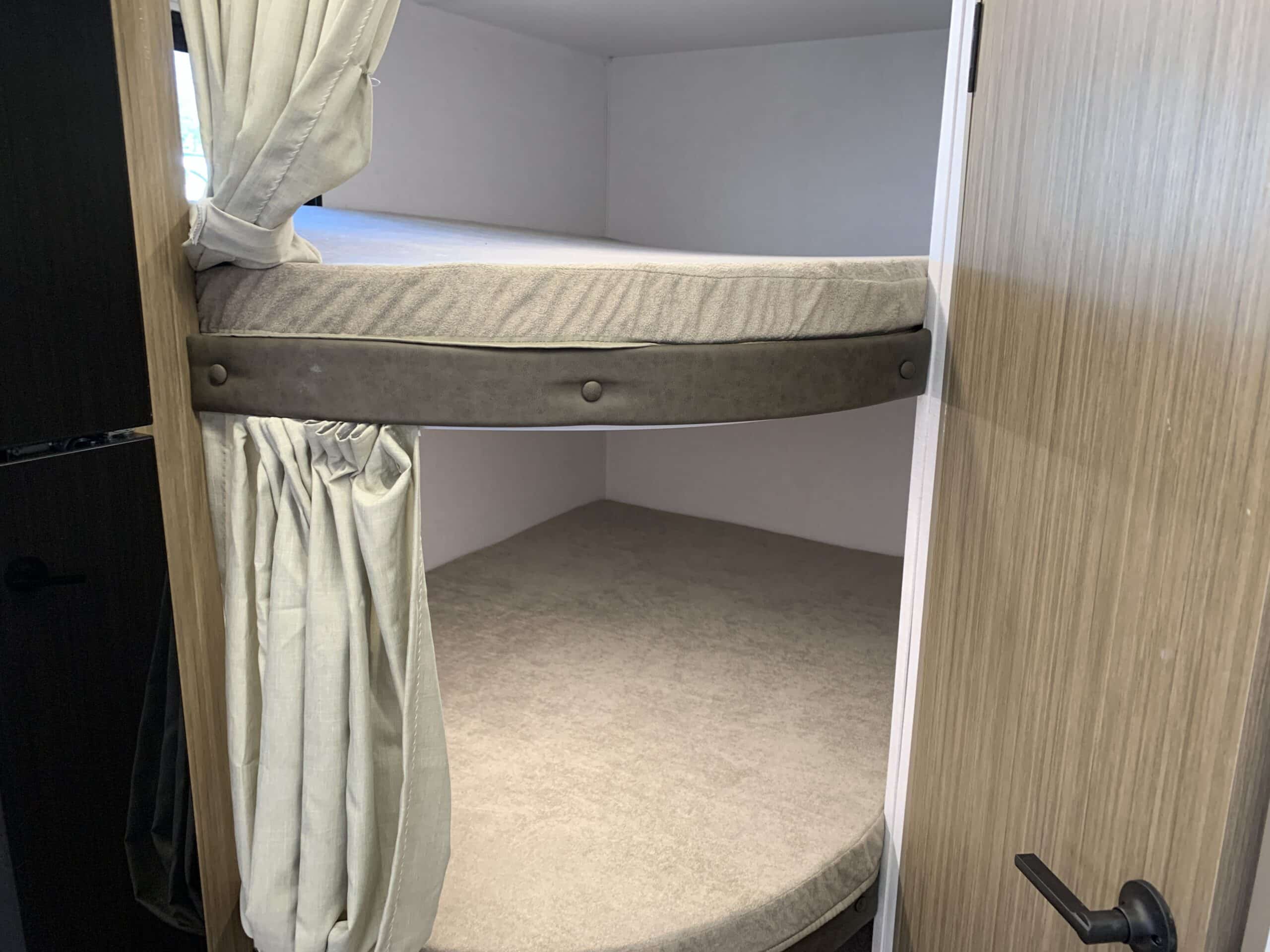 D’abord, cette roulotte a un auvent de 12 pieds, une douche et une cuisine pour profiterez de l’extérieur sans soucis. Puisque ses marches sont ajustables et très stables vous aurez un accès facile à l’intérieur. Les coffres ont un bel espace de rangement.