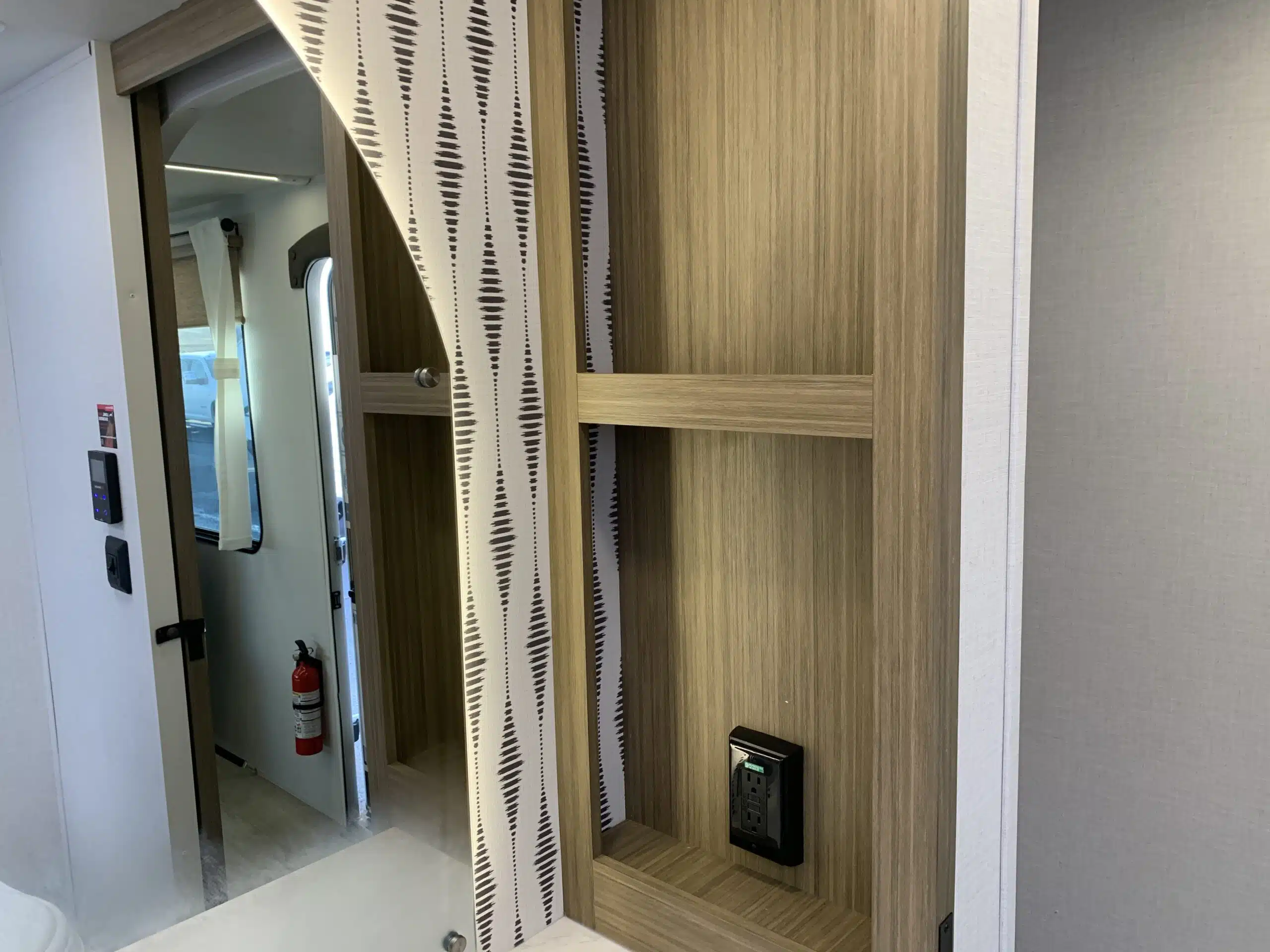 D’abord, cette roulotte a un auvent de 20 pieds, une douche et une cuisine pour profiter de l’extérieur sans soucis.