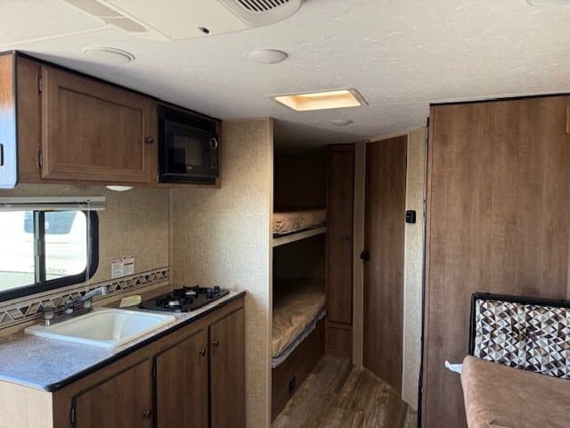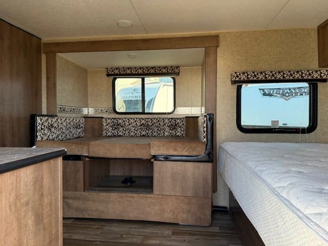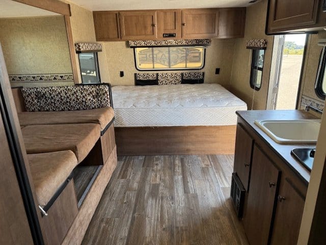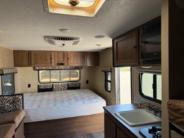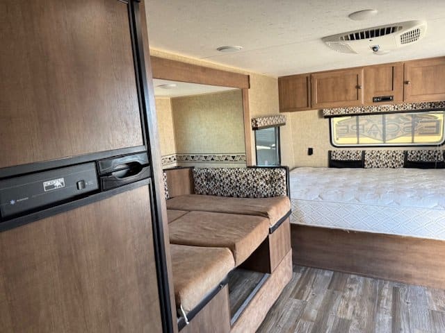 De plus, la Escape 196BHS a un air climatisé qui tempérera l’ambiance désirée. Par ailleurs, la cuisinière a 2 brûleurs, un réfrigérateur et un micro-ondes. De plus, il y a une banquette qui se transforme en lit. Enfin, le système audio vous permettra d’écouter votre musique préférée.