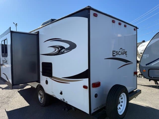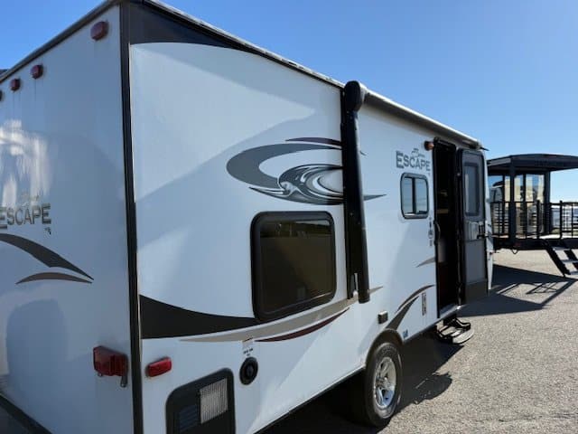 2017 Escape 196BHS, roulotte pour famille de 22 pieds à 2915 lbs avec 1 essieu, extérieur en fibre et 1 extension.