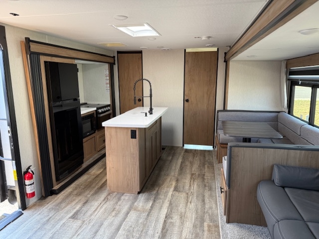 très belle roulotte familiale de 37pieds total et de 8688lbs ,chambre avant fermer ,salle de bain complète avec douche vitré , ilot central ,deux extension face a face ,banquette en U et divan dans extension ,frigo deux porte et cuisinière dans extension ,beau garde mangé , chambre enfant arrière avec extension couche 4 enfant fermer ,air climatisé , four ,four micro onde ,tv ,grosse cuisine extérieur avec frigo deux porte plaque de cuisson et lavabo ,rack a bagage , jack électrique aux 4 patte et jack avant électrique , auvent électrique ,panneau solaire 200 watt ,,financement disponible