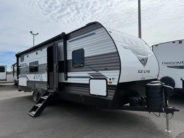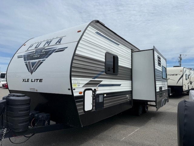 2023 Puma 25BHSC, roulotte pour famille de 31 pieds à 6028 lbs avec 2 essieux, extérieur en aluminium et 1 extension.