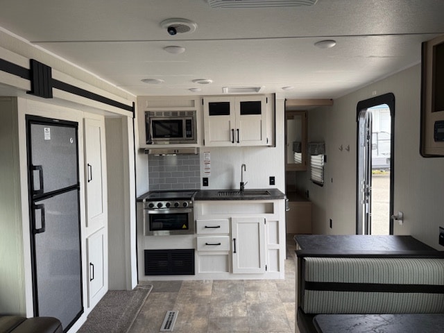 De plus, la Puma 25BHSC a un air climatisé de 13500 btu qui tempérera l’ambiance désirée. Par ailleurs, la cuisinière a un four et 3 brûleurs, un réfrigérateur et un micro-ondes. De plus, il y a une banquette, un sofa et un garde-manger. Enfin, le système audio vous permettra d’écouter votre musique préférée.