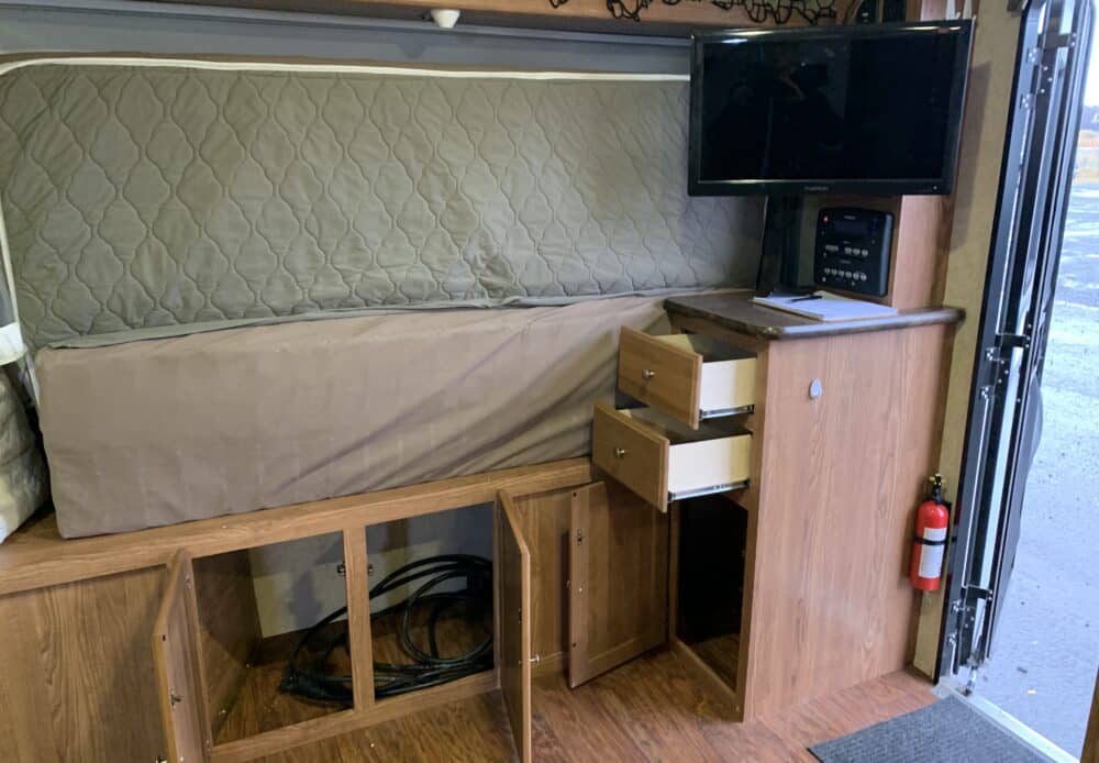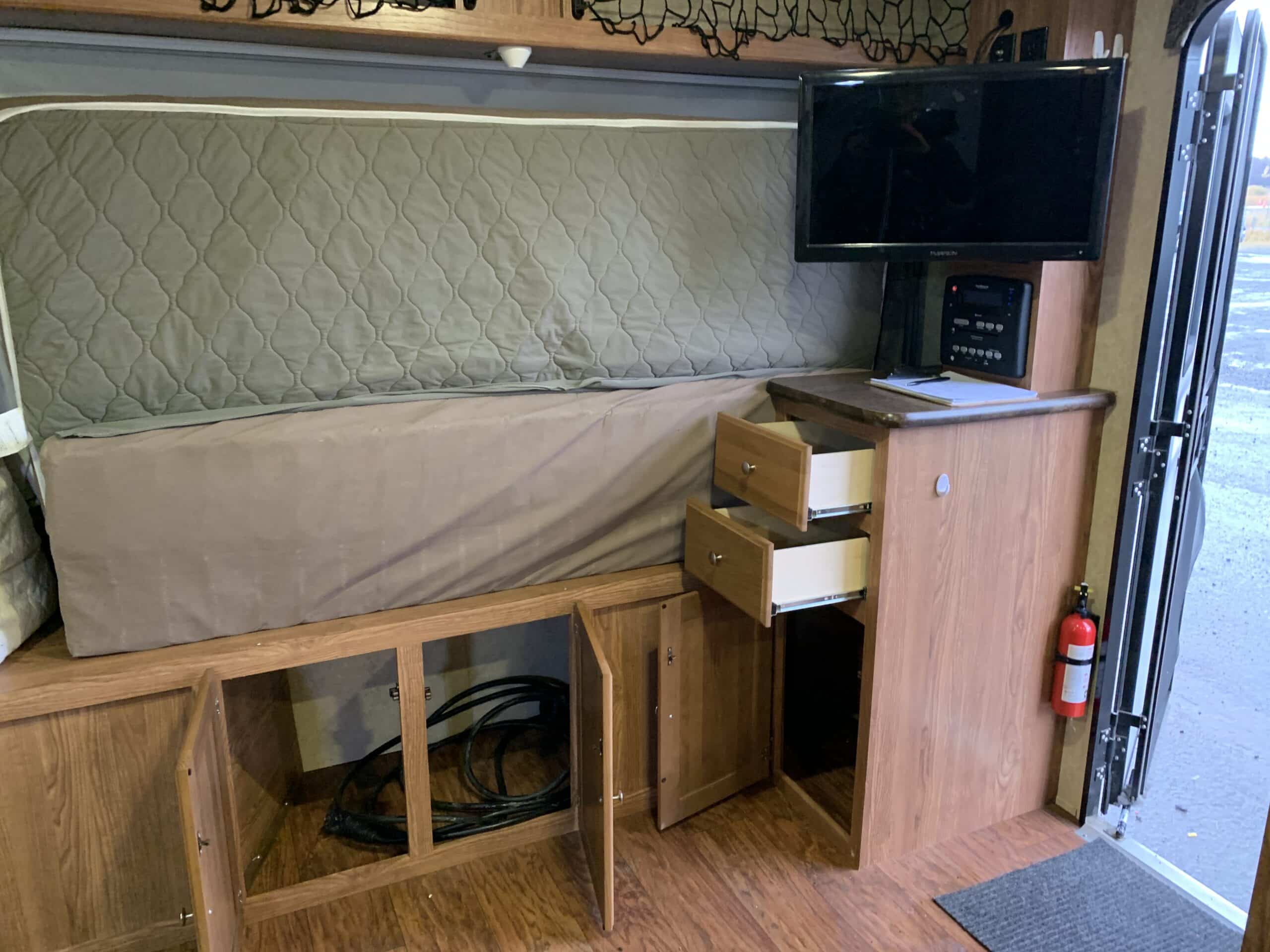 La Shamrock 21SS a un air climatisé qui tempérera l’ambiance désirée. Par ailleurs, la cuisinière a un four avec 3 brûleurs, un réfrigérateur gaz/électricité et un micro-ondes. De plus, une banquette se transforme en lit. Enfin, le système audio vous permettra d’écouter votre musique préférée.