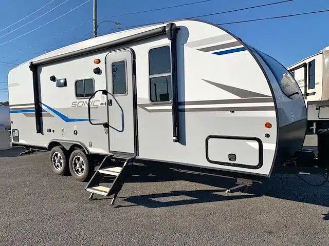 2022 Sonic 220VBH, roulotte légère familiale de 27 pieds à 4530 lbs avec 2 essieux, extérieur en fibre.