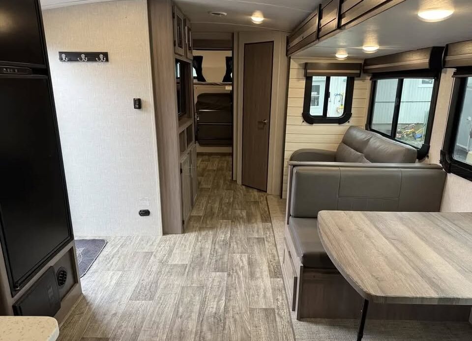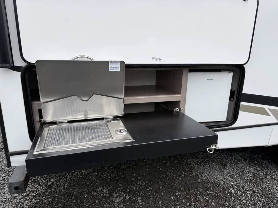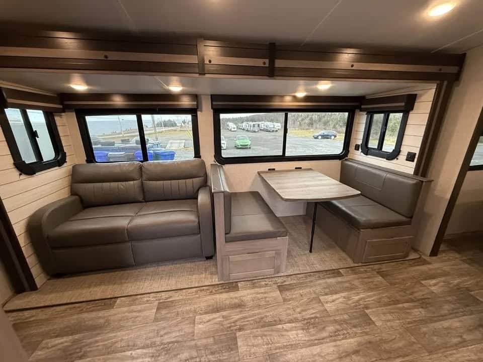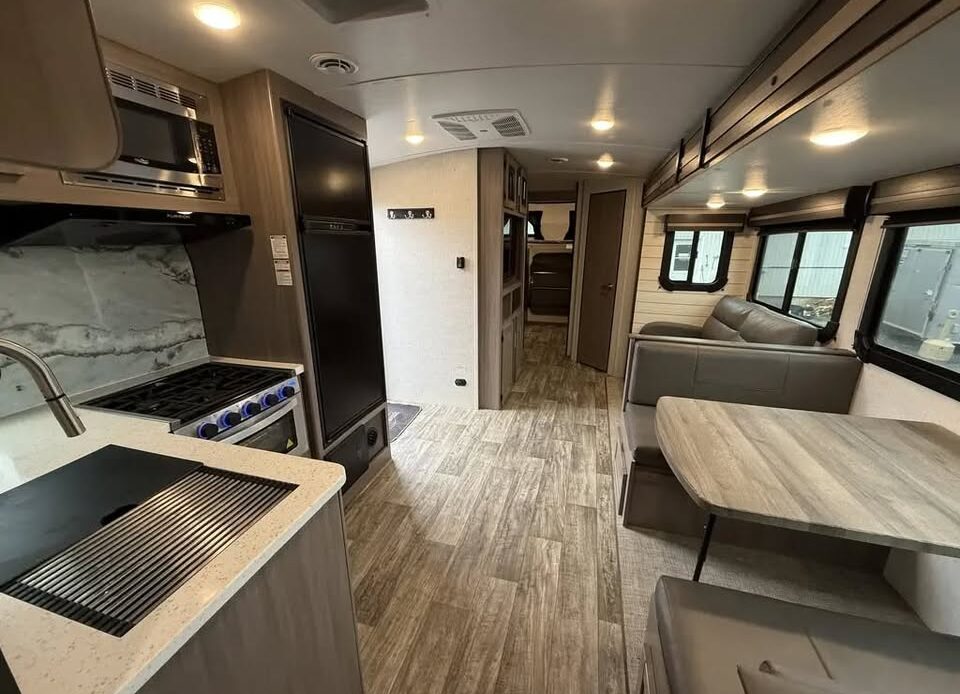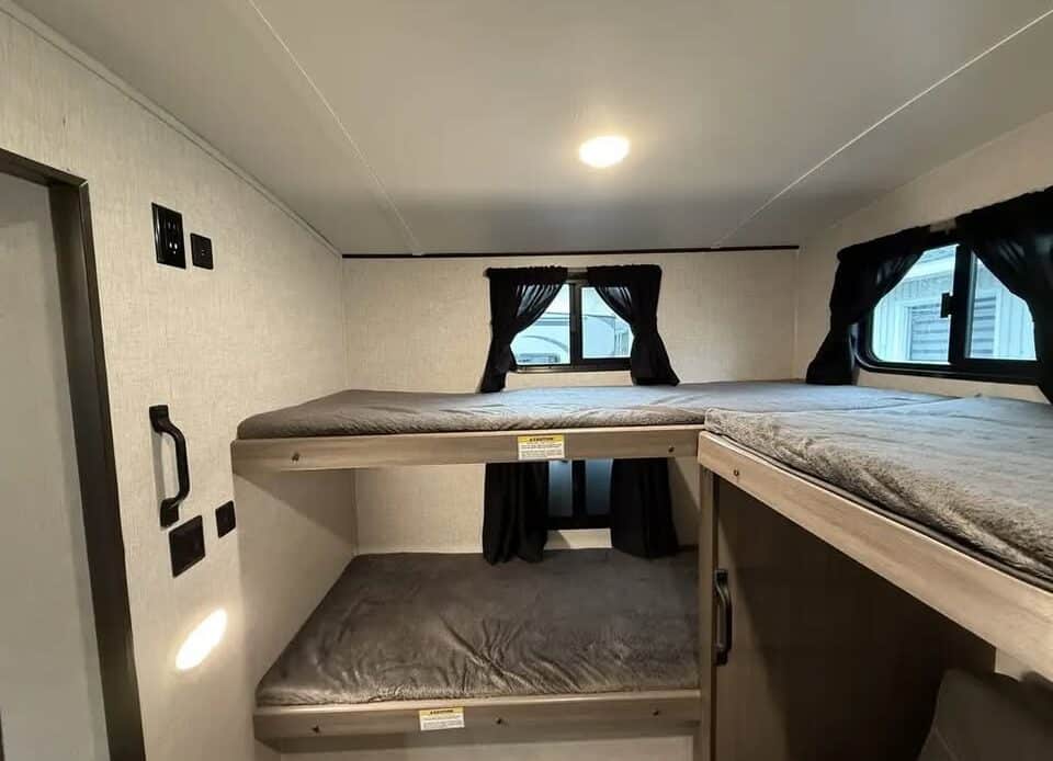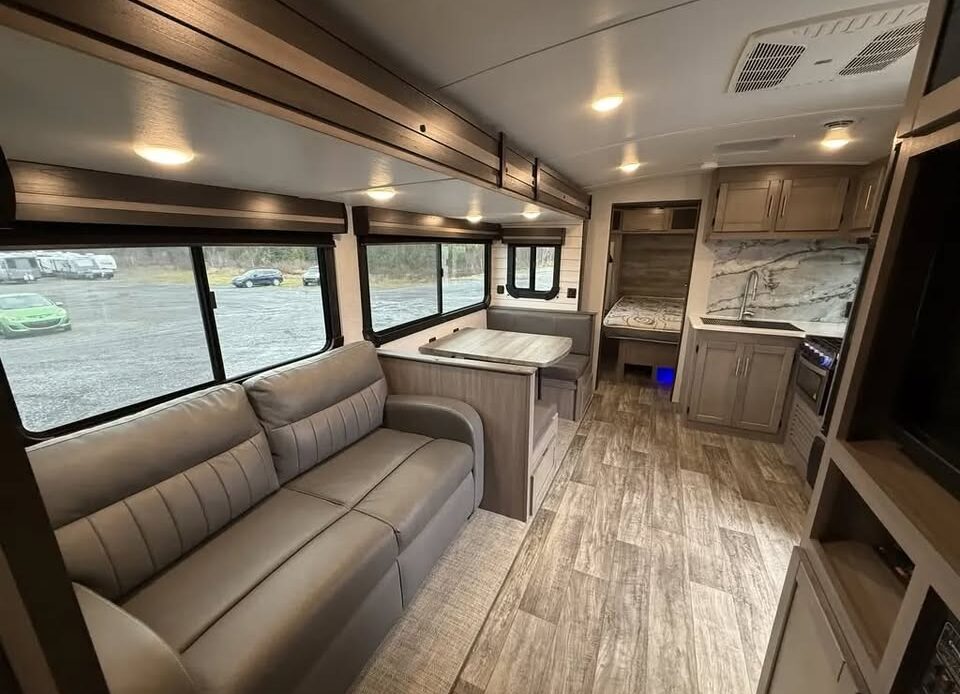 De plus, la Sunset 299QB a un air climatisé de 13500 btu qui tempérera l’ambiance désirée. Par ailleurs, la cuisinière a 3 brûleurs, un réfrigérateur et un micro-ondes. De plus, il y a une banquette, un sofa lit et un garde-manger. Enfin, le système audio vous permettra d’écouter votre musique préférée.