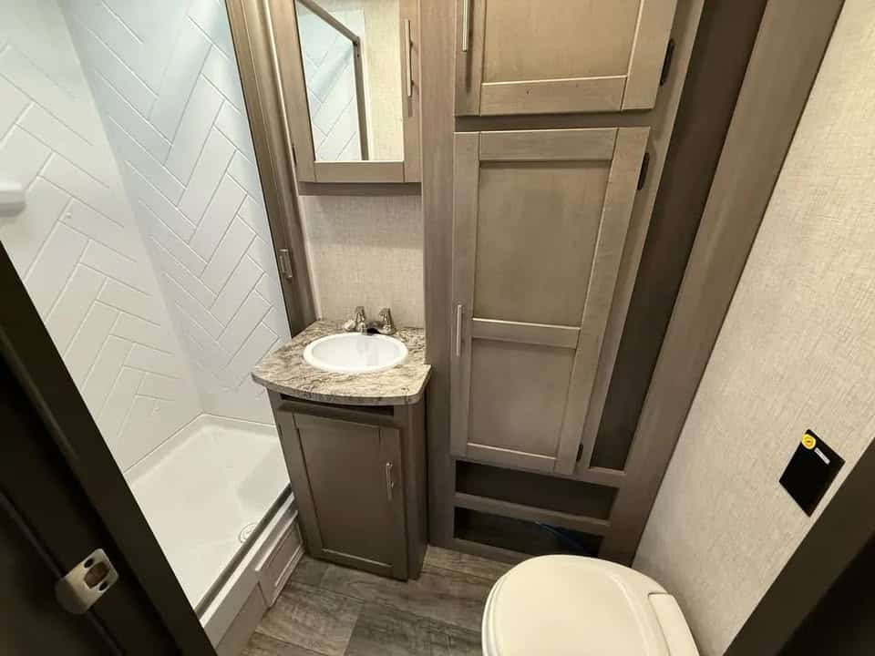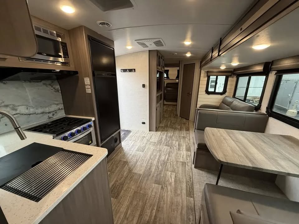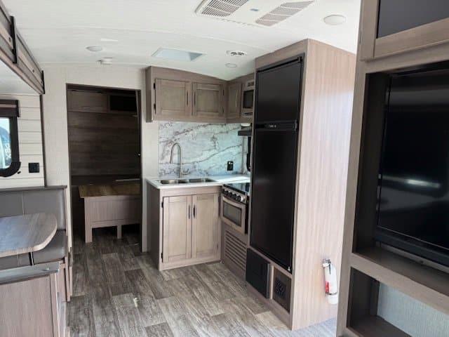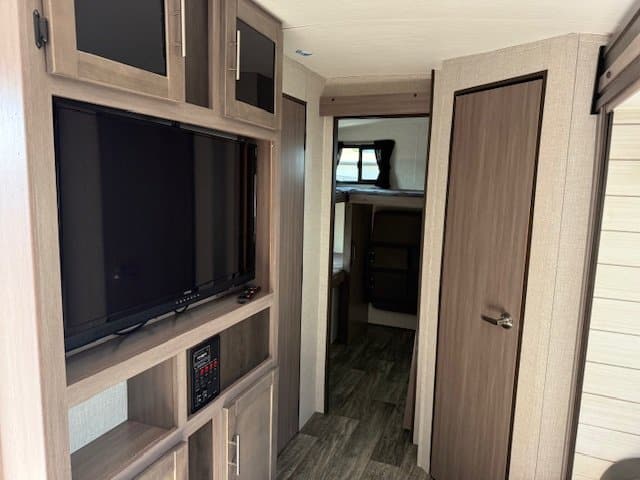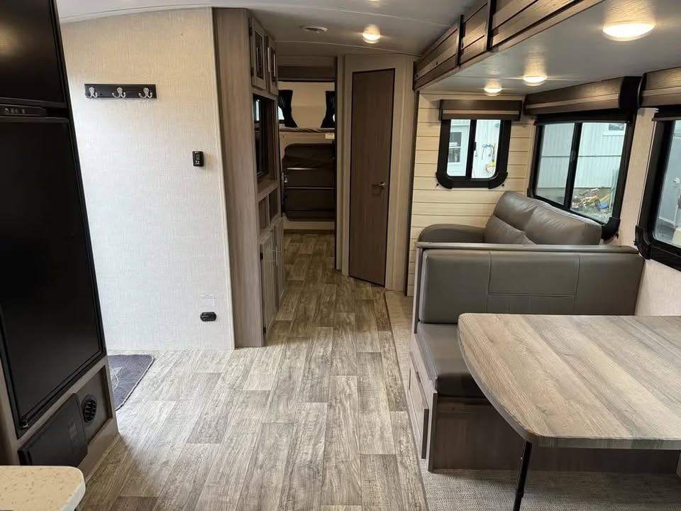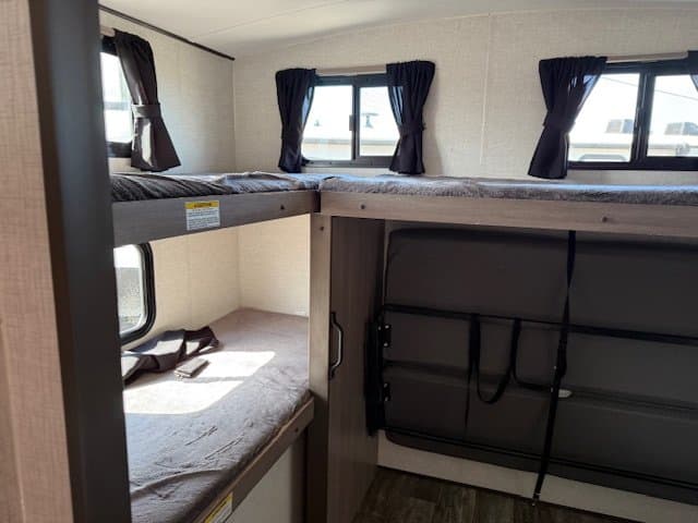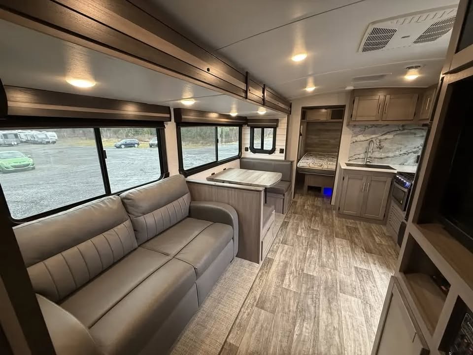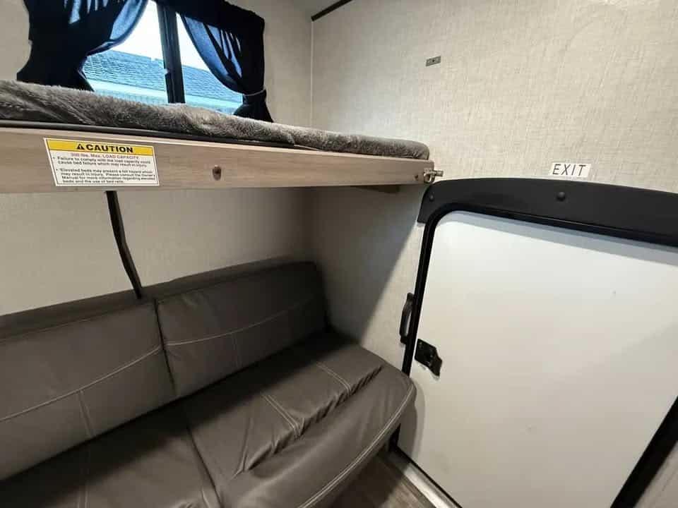 De plus, la Sunset 299QB a un air climatisé de 13500 btu qui tempérera l’ambiance désirée. Par ailleurs, la cuisinière a 3 brûleurs, un réfrigérateur et un micro-ondes. De plus, il y a une banquette, un sofa lit et un garde-manger. Enfin, le système audio vous permettra d’écouter votre musique préférée.